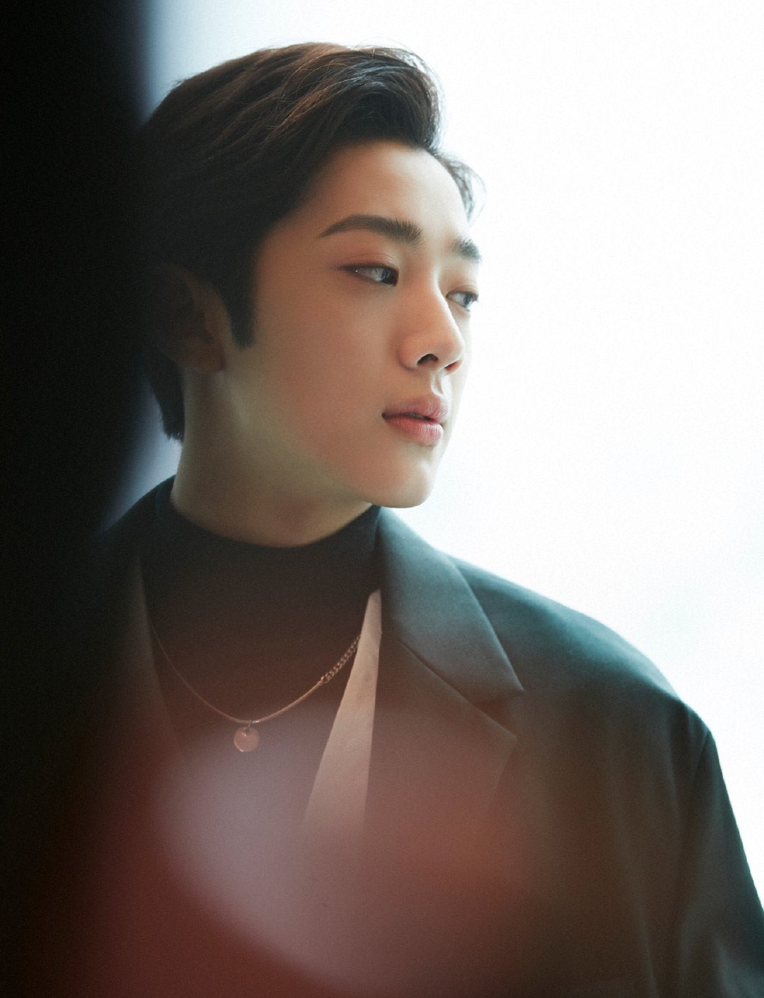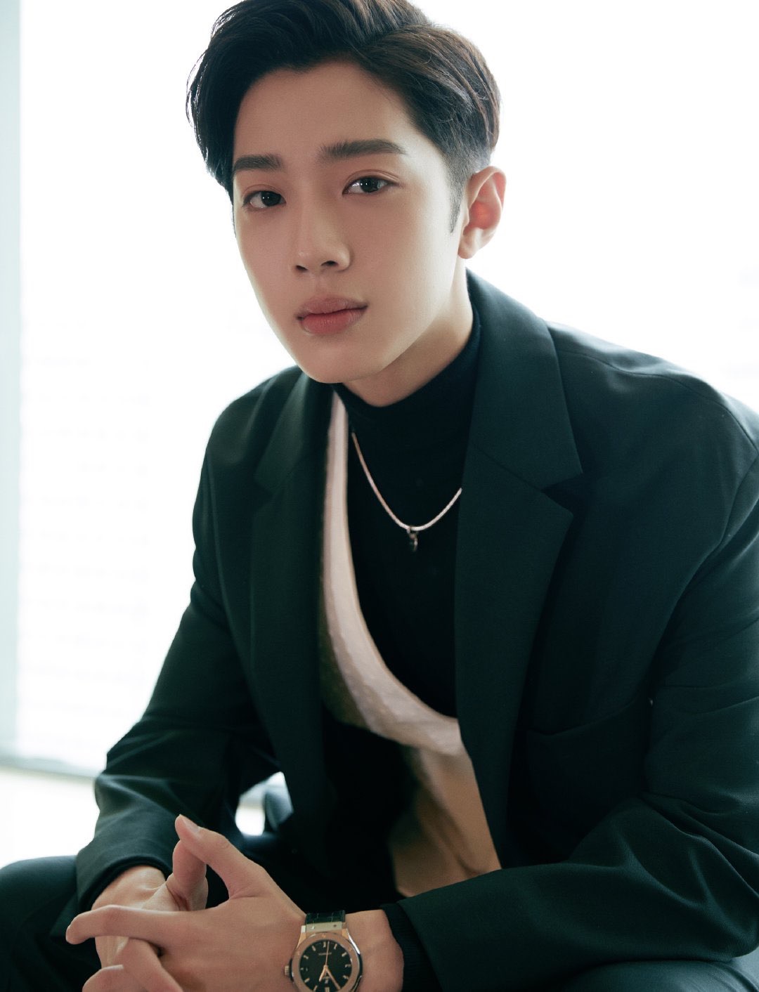 Huỳnh Hiểu Minh nam tính, đứng trên trang bìa của tạp chí Elle Men tháng 6.