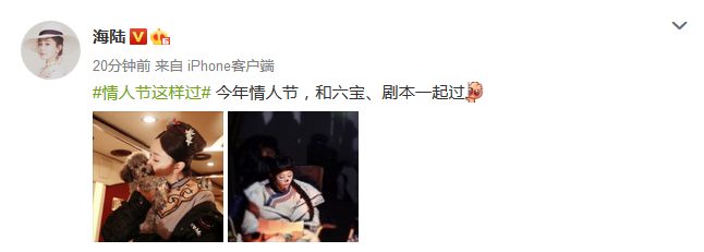 Hải Lục: “#Lễ tình nhân trôi qua như thế này#, Hôm nay là lễ tình nhân, bên cạnh Lục Bảo và kịch bản”.