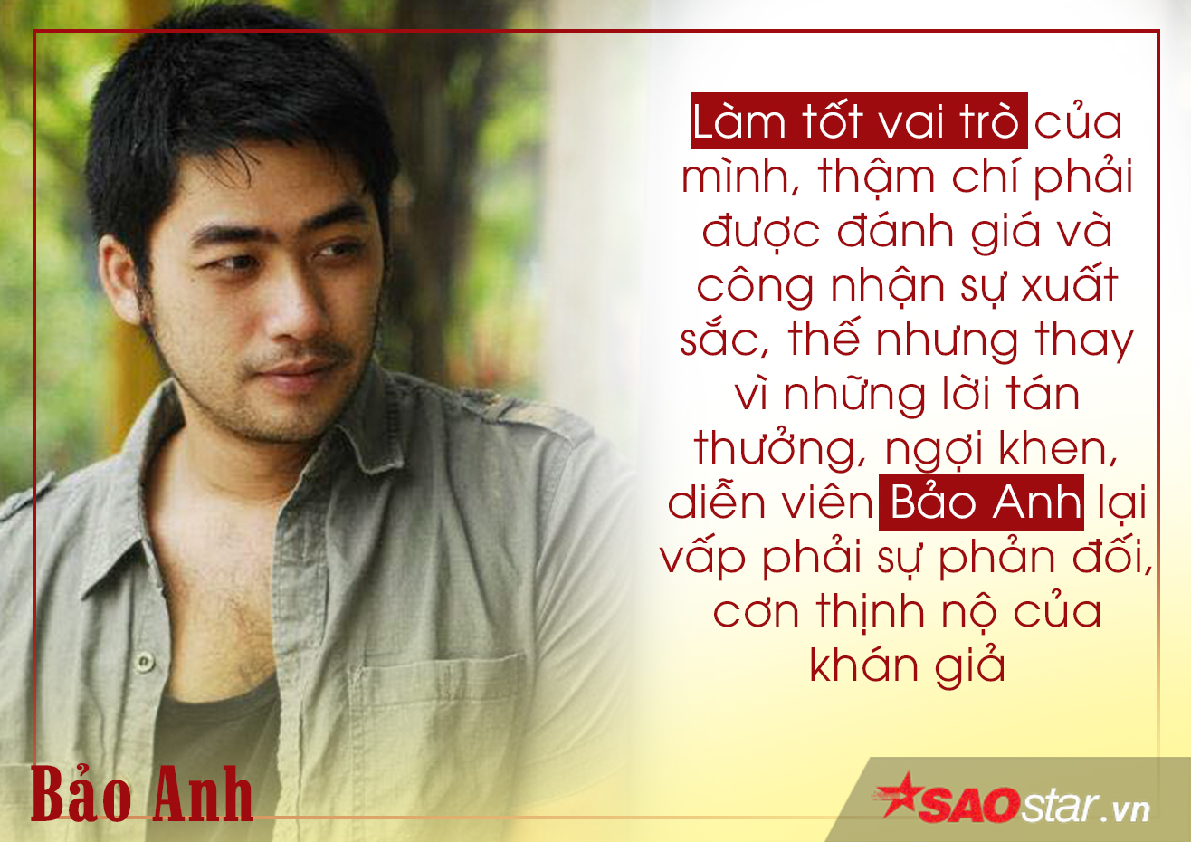 Với một người sống khép kín, Bảo Anh xem những giờ đồng hồ sau khi phim kết thúc vào tối ngày 31/08 vừa qua như “địa ngục”.Mọi người quay lưng lại với anh, mọi búa rìu dư luận, bao tội lỗi để đổ dồn xuống người diễn viên trẻ này. Thế nhưng, anh không gục ngã. Anh vẫn bản lĩnh đối mặt với những điều tiếng và cơn thịnh nộ từ cộng đồng mạng. Điều đó hoàn toàn đúng đắn, bởi lẽ Bảo Anh chẳng có gì sai trong chuyện này. Anh là người diễn viên, dẫu cho anh tự nhận bản thân mình chỉ là kẻ tay ngang đối với bộ môn nghệ thuật này, nhưng chính anh mới là một diễn viên chuyên nghiệp. Dù đã biết trước phản ứng của khán giả ở tập cuối này, anh vẫn tập trung cho vai diễn của mình, làm tốt hơn, tốt hơn nữa, tốt đến mức khiến khán giả phải tin, phải giận và phải ghét anh ở chính khoảnh khắc này.