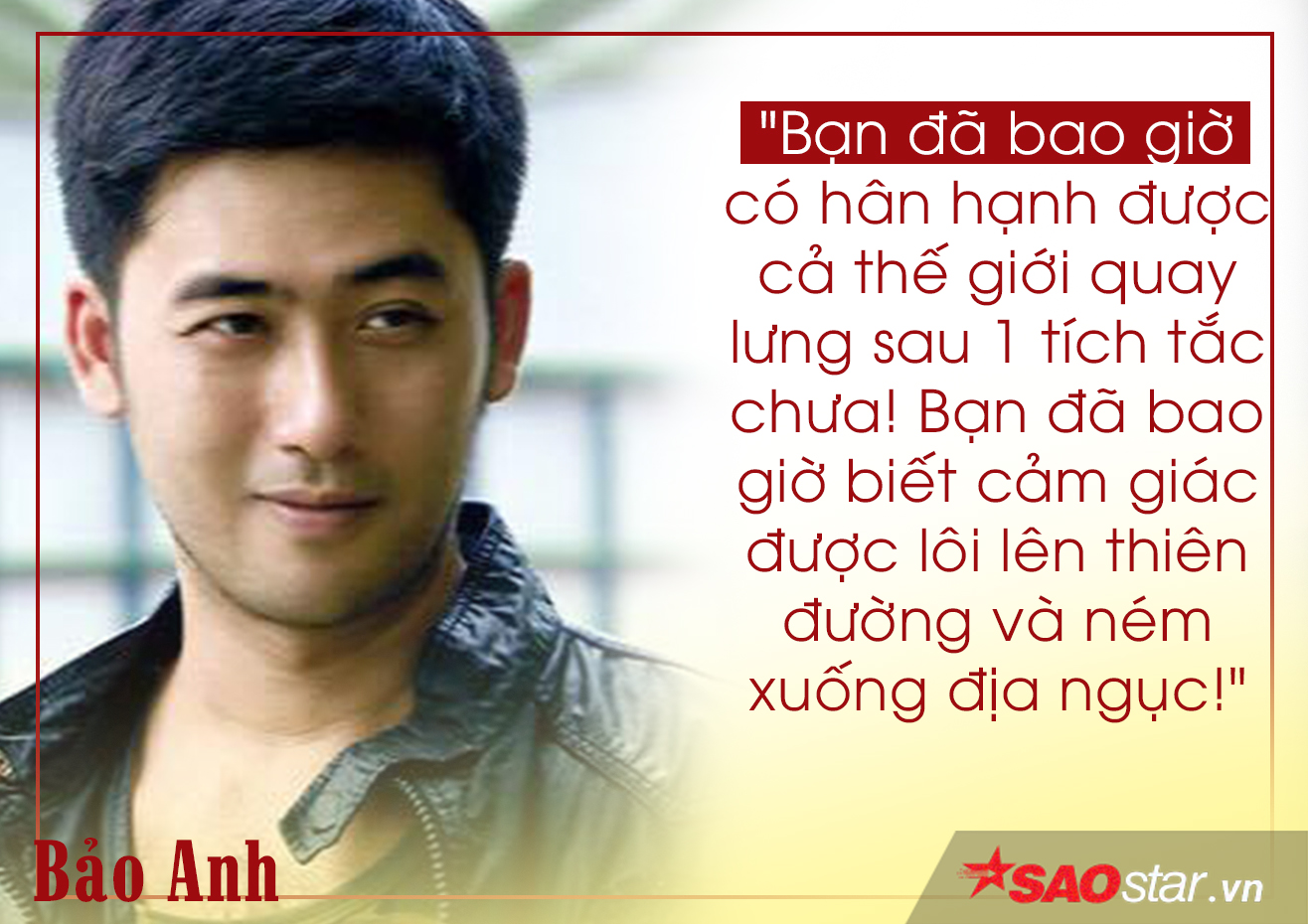 “Bạn đã bao giờ có hân hạnh được cả thế giới quay lưng sau 1 tích tắc chưa! Bạn đã bao giờ biết cảm giác được lôi lên thiên đường và ném xuống địa ngục!”. Anh chua chát nói, “với 1 bộ phim về mảng xã hội đen như thế này thì người tốt là súc vật, người tốt là cặn bã, người tốt là thứ có hay không có không quan trọng”. Là một người mạnh mẽ, Bảo Anh đã đọc từng bình luận hoặc lời nhắn của người xem trên trang cá nhân của mình hay fanpage của bộ phim, nhưng những gì anh nhận được thì quá đau lòng: “50% muốn giết tôi, 40% chửi tôi, 9% chấp nhận 1 cách gượng ép và 1% ủng hộ”.