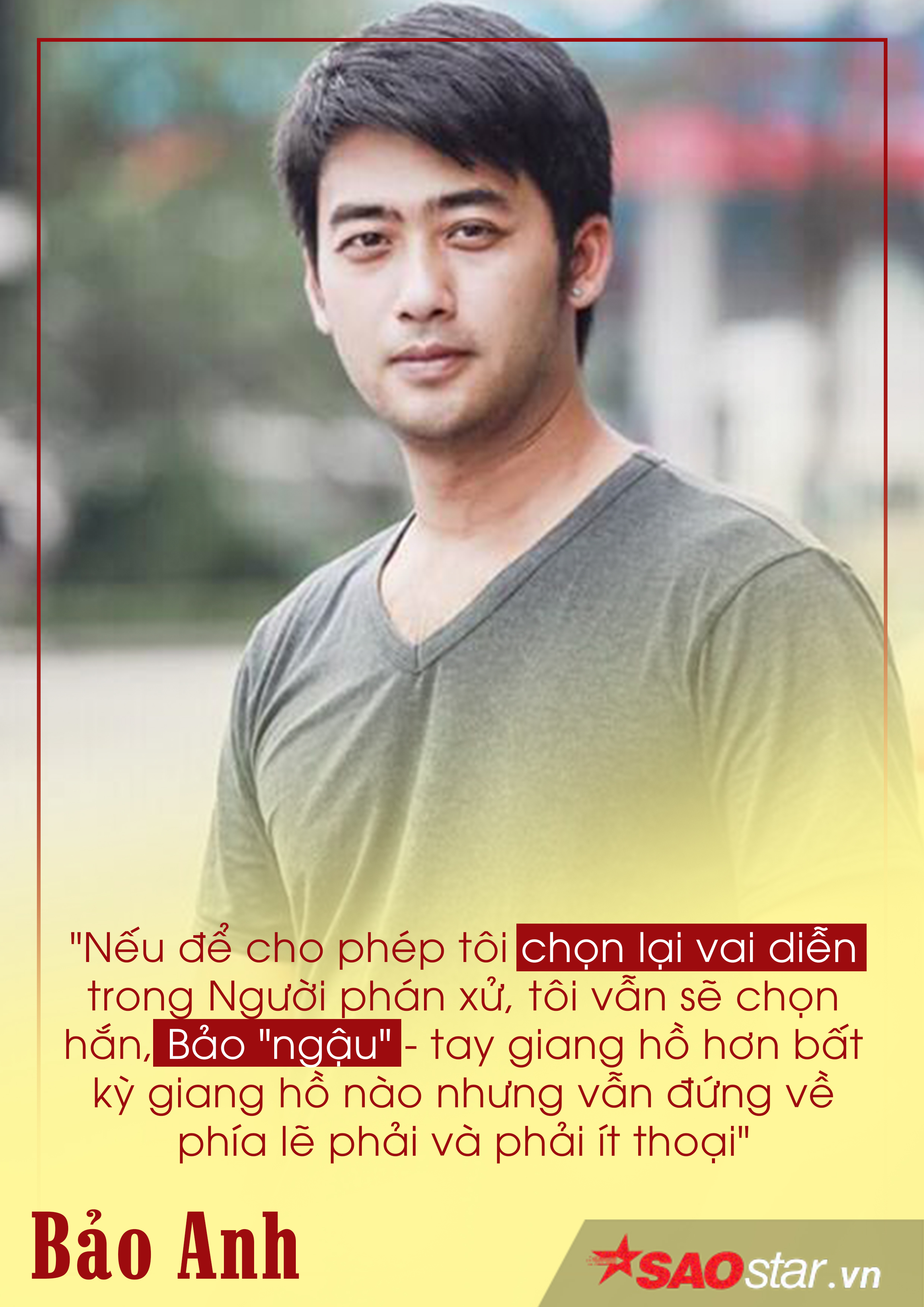 Tưởng chừng như mọi thứ sẽ hạ gục anh, khiến người diễn viên này hối hận vì đã chọn nhân vật này, đã đồng ý trở thành một Bảo “ngậu” bị hàng triệu người căm ghét như thế này. Nhưng không, anh vẫn khẳng khái nói rằng: “Nếu để cho phép tôi chọn lại vai diễn trong Người phán xử, tôi vẫn sẽ chọn hắn, Bảo “ngậu” - tay giang hồ hơn bất kỳ giang hồ nào nhưng vẫn đứng về phía lẽ phải và phải ít thoại”. Có bao nhiêu người diễn viên tâm huyết với nghề, với vai diễn như anh? Có bao nhiêu người vẫn mạnh mẽ đứng đấy mặc cho dư luận đang ném hàng tấn thứ vào người mình như một nơi để trút cơn giận? Và có bao nhiêu người trẻ như anh có được “cái gan” thách thức cả thế gian này mà không hề hối hận, vì một lẽ phải rằng anh chẳng hề làm gì sai.