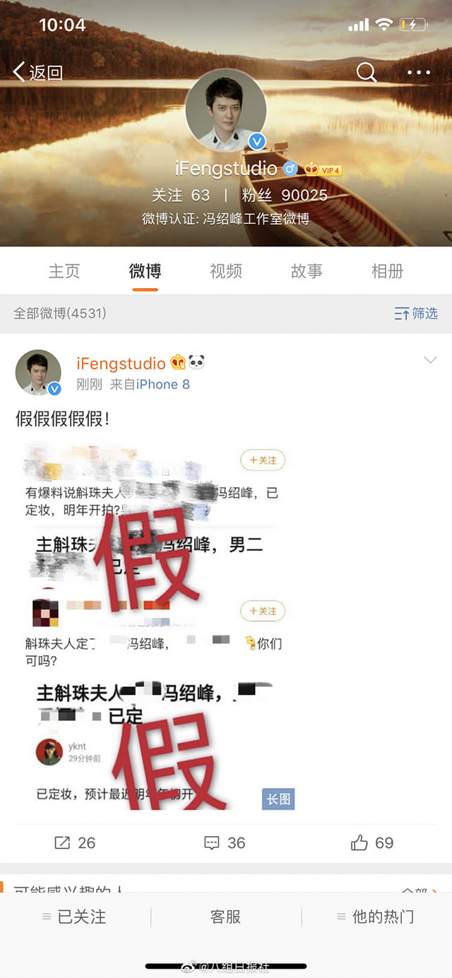 Tuy nhiên, phía studio của nam diễn viên họ Phùng đã đưa ra thông báo đây chỉ là tin đồn thất thiệt, hiện ông xã Triệu Lệ Dĩnh không liên quan gì đến dự án này. Chính lời xác nhận “tin giả x5” từ phía Phùng Thiệu Phong đã khiến không ít khán giả thất vọng.