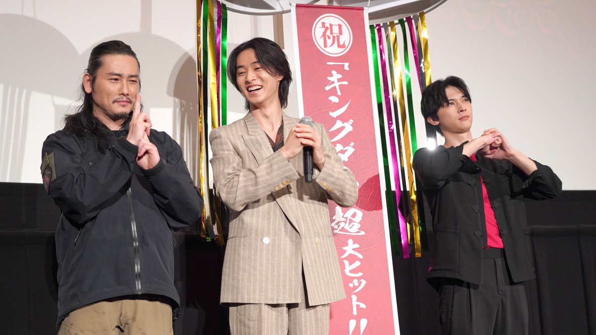 Trong khi Yamazaki và Yoshizawa cùng giật quả bóng rơi xuống chữ “Mừng KINGDOM siêu big hit!!“, MC của chương trình đã công bố tính đến ngày 27/4, KINGDOM đã huy động được 1 triệu người đến rạp, doanh thu đã vượt qua 1,4 tỷ yên. Yamazaki đã phát biểu “Thực sự đây đã thành một tác phẩm đặc biệt đối với tôi. Tôi rất vui khi có nhiều khán giả tới xem”.
