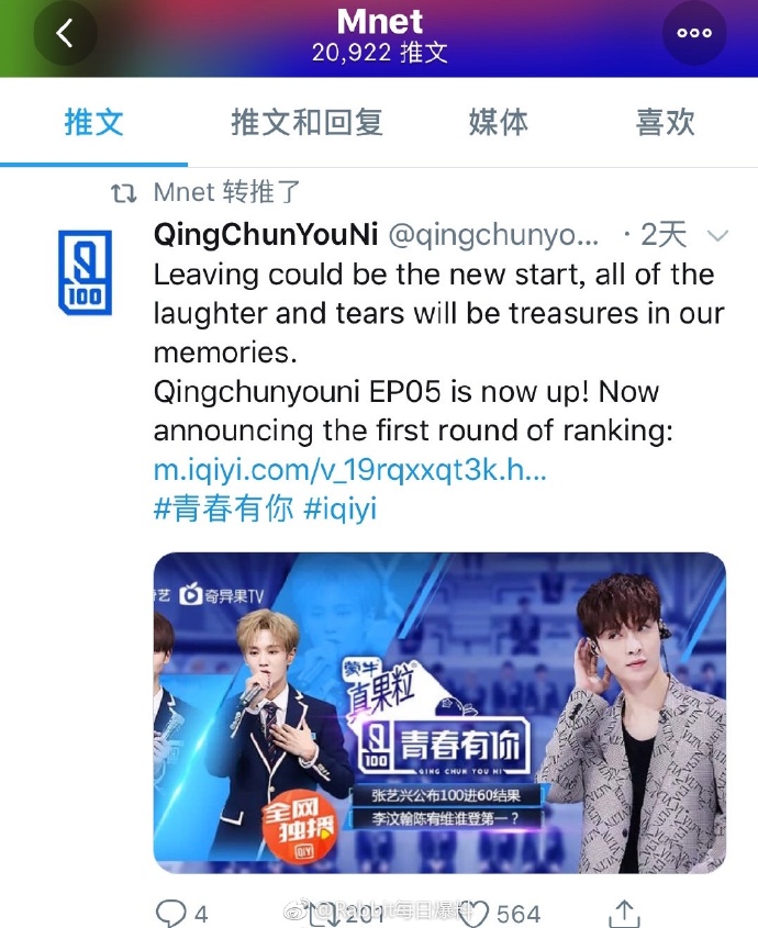 Sau mùa 1 tràn ngập drama thì mới đây, trên các phương tiện truyền thông, Mnet đã shares bài ủng hộ, PR Idol Producer mùa 2 (Tên mới của chương trình đổi thành Thanh xuân có cậu) như một lời khẳng định bên phía Iqiyi đã có giấy phép mua bản quyền, chấm dứt bao thuyết âm mưu, scandal sao chép đạo nhái của phía chương trình Trung Quốc.