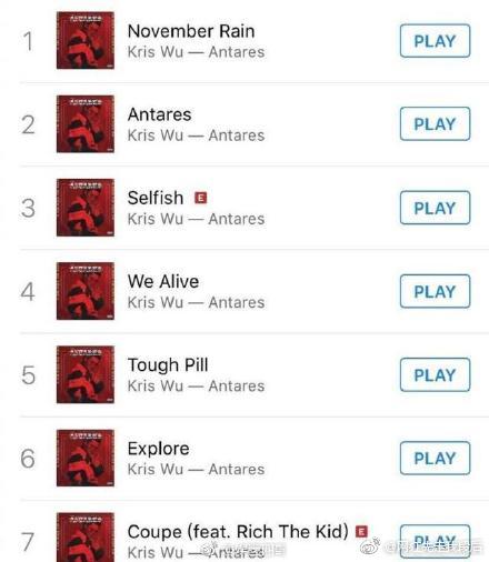 Sau những gì đã diễn ra thì ngày hôm nay, cư dân mạng phát hiện tất cả những bài hát của Ngô Diệc Phàm đều bị gỡ xuống khỏi bảng xếp hạng iTunes, và đứng đầu là bài Thank U,Next của tiểu thiên hậu Ariana Grande và bài thứ hai là của Lady gaga. Những bài hát on top suốt thời gian qua của Ngô Diệc Phàm bị hệ thống iTunes của Mỹ nghi ngờ dùng thủy quân, hack số liệu nên đồng loạt bị gỡ bỏ xuống toàn bộ.