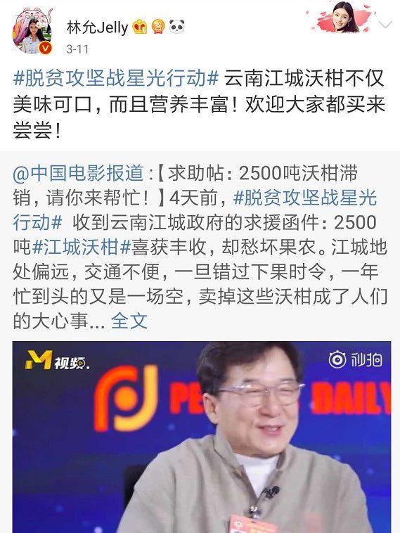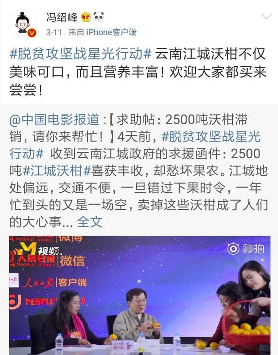 Vào ngày Triệu Lệ Dĩnh xuất viện, Phùng Thiệu Phong cũng đã lần đầu cập nhật weibo của mình bằng bài đăng công ích thế nhưng độ tương đồng trong bài đăng của nam diễn viên lại trùng khớp với tình cũ Lâm Duẫn, nội dung chủ yếu là hoạt động công ích xóa đói giảm nghèo, tuyên truyền giúp đỡ những nơi có hoàn cảnh khó khăn, giúp cải thiện cuộc sống của họ. Hoạt động Tinh Quang lần này là do Thành Long cùng một số nghệ nhân nổi tiếng trong ngành giải trí phát động, thông qua sức ảnh hưởng minh tinh của họ mà giúp đỡ những nông dân còn nghèo đói.
