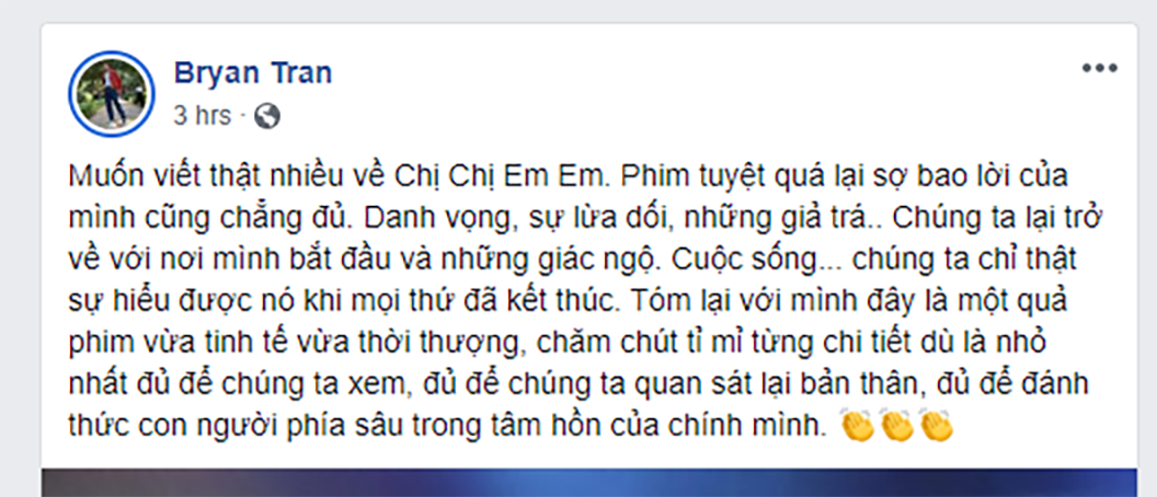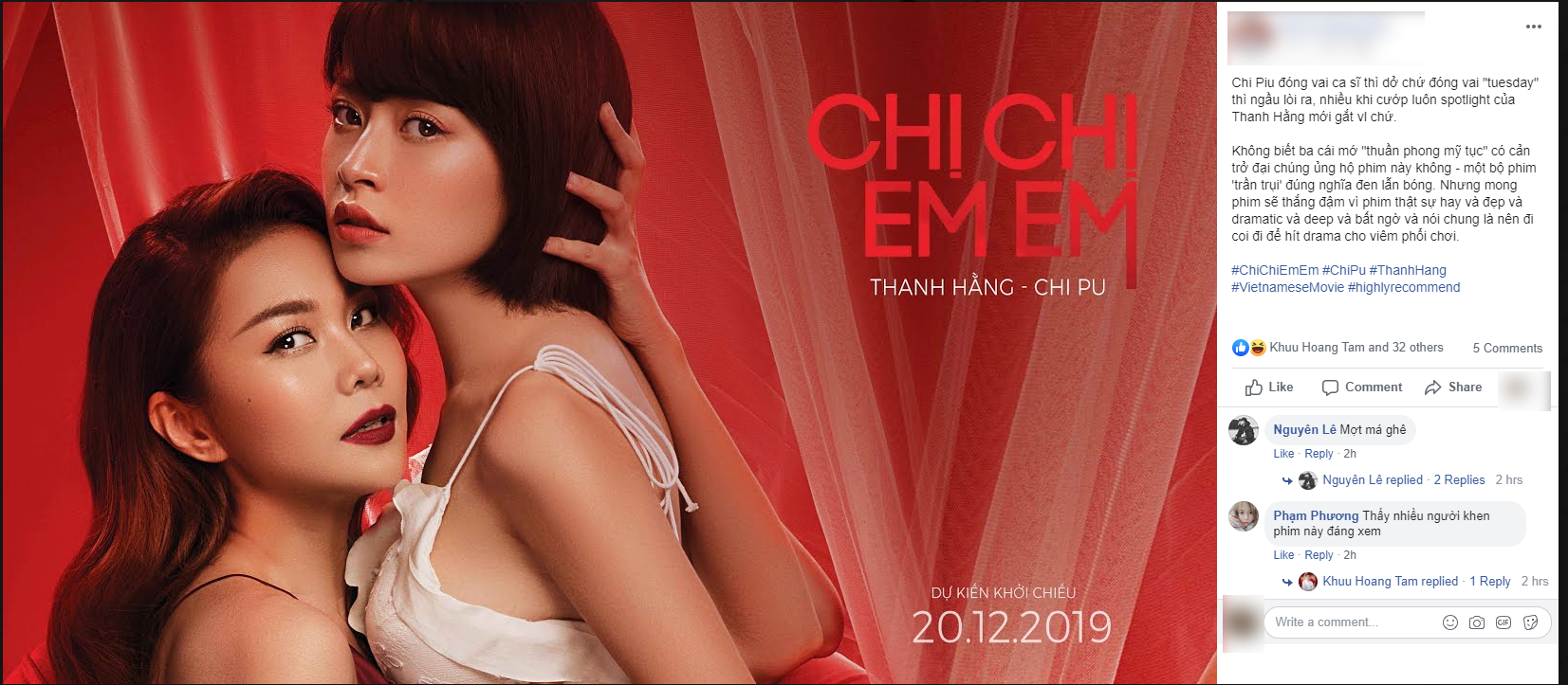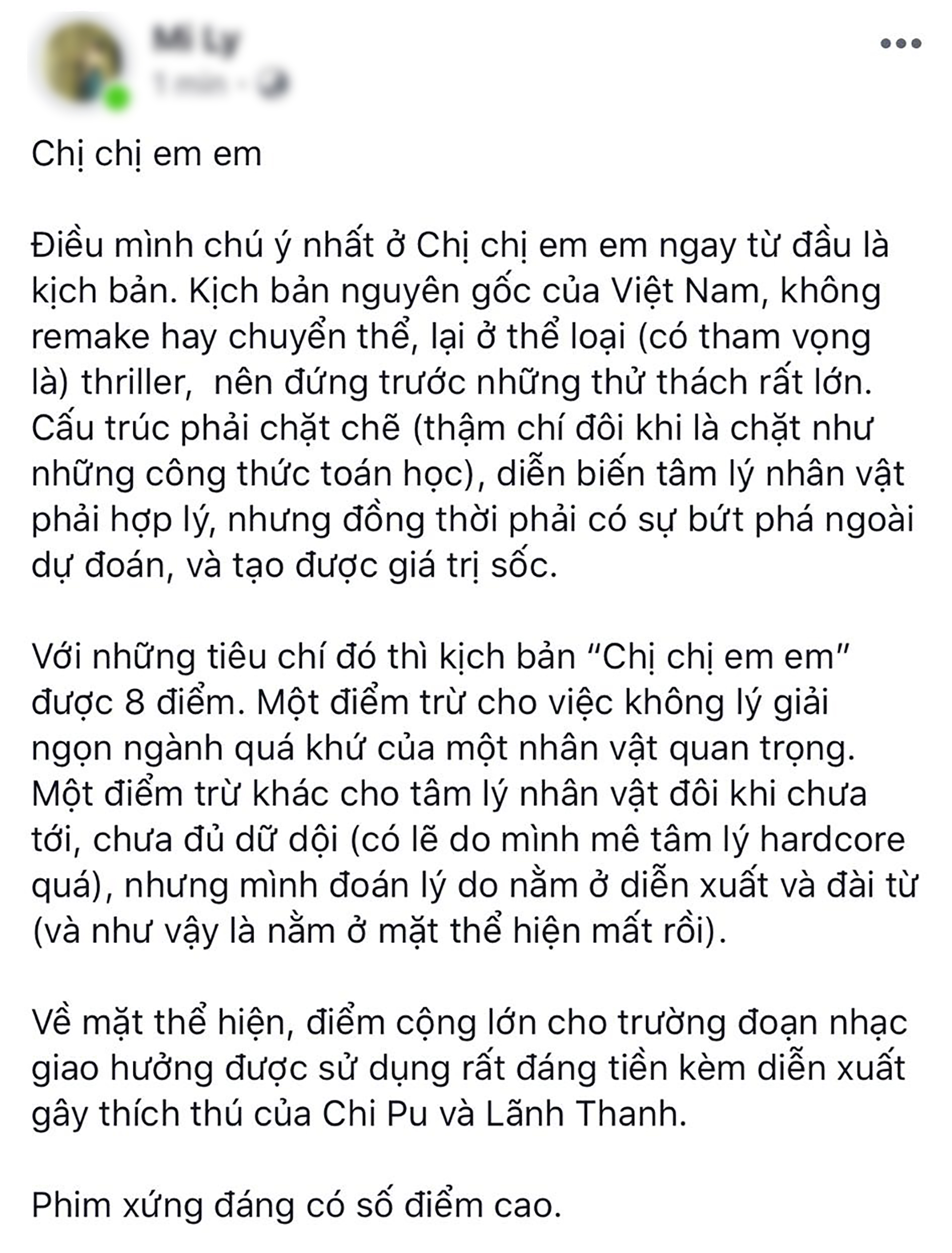 Trong khi đó, một nữ biên tập viên quan tâm ở ngay chính kịch bản của Chị chị em em khi tác phẩm không phải phim remake hay chuyển thể từ một câu chuyện sẵn có, mà là kịch bản gốc (original).
