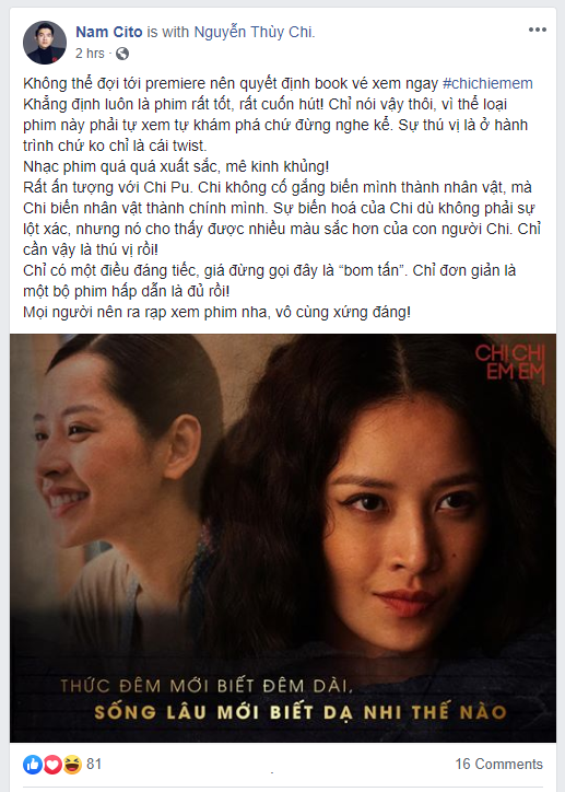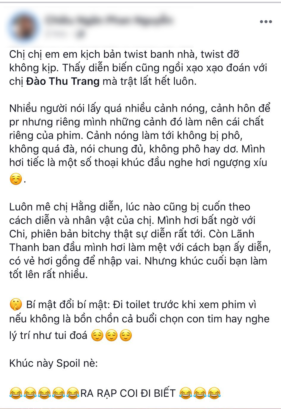 “Chi Pu đóng vai ca sĩ thì dở chứ đóng vai “tuesday” thì ngầu lòi ra, nhiều khi cướp luôn spotlight của Thanh Hằng mới gắt chứ.”