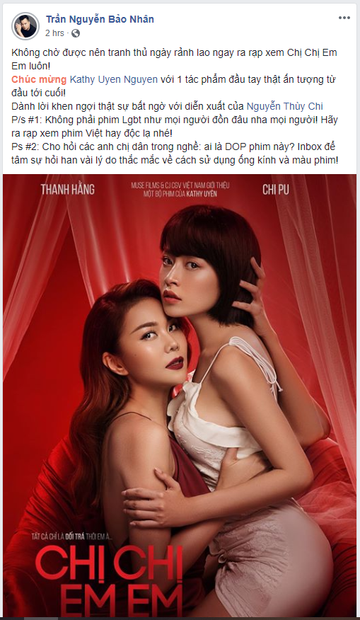 Trong phần chia sẻ của mình, đạo diễn Bảo Nhân ngợi khen Chi Pu, đạo diễn hình ảnh cũng như 'người thuyền trưởng' Kathy Uyên cho tác phẩm này.