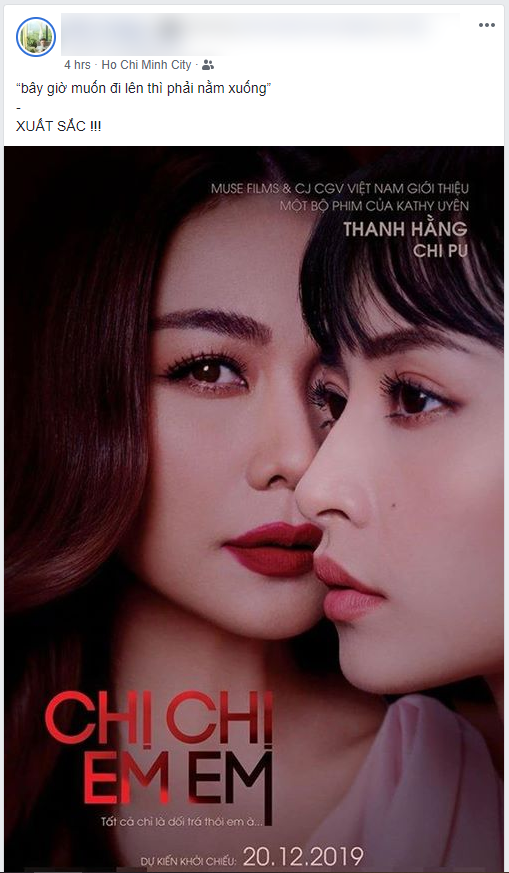 Cuối cùng, phim điện ảnh Chị chị em em cũng đã chính thức ra rạp với suất chiếu sớm (sneakshow) từ ngày 14/12/2019 vừa qua, mở đầu cho 'cuộc chiến phim Việt' cuối năm 2019 cùng với Mắt biếc. Sau ngày trình chiếu đầu tiên, tác phẩm của đạo diễn Kathy Uyên đã nhận được nhiều phản ứng tích cực từ khán giả.