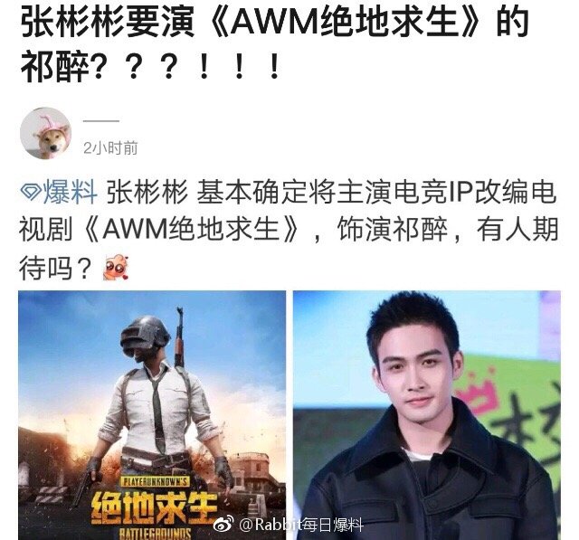 AWM tuyệt địa cầu sinh (AWM绝地求生) là tiểu thuyết game đam mỹ nổi tiếng của tác giả Mạn Mạn Hà Kỳ Đa. Tiểu thuyết đam mỹ này dựa trên cốt truyện lấy cảm hứng từ game PUBG. Gần đây, có nguồn tin tiết lộ rằng tiểu thuyết game này sẽ được cải biên thành phim truyền hình, và Trương Bân Bân là một trong những nam diễn viên tranh vai nam chính Kỳ Túy trong bộ phim này.
