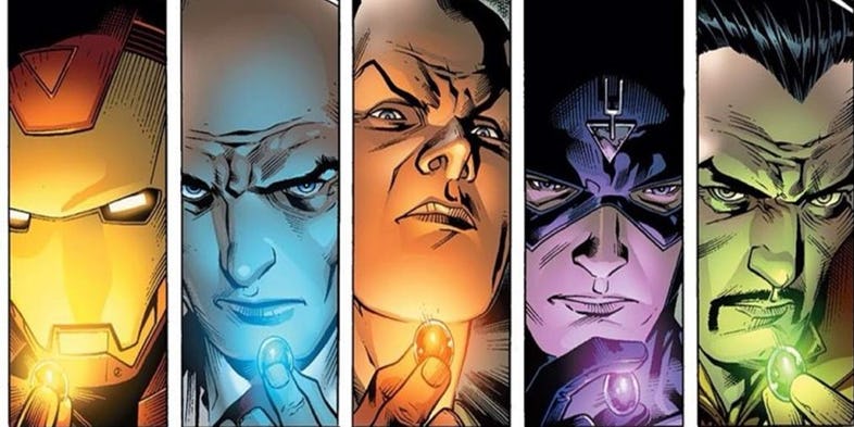 Cộng đồng người hâm mộ luôn mong đợi một tương lai không xa sẽ được chiêm ngưỡng hội Illuminati trên màn ảnh rộng. Như nhiều người đã biết, Illuminati là một nhóm bao gồm sáu siêu anh hùng cùng nhau bảo vệ Trái Đất. Mỗi người đều giữ một Viên đá Vô cực để phòng ngừa kẻ khác có thể tái tạo lại một Găng Tay Vô Cực nhằm thống trị Địa cầu như cách Thanos từng làm.