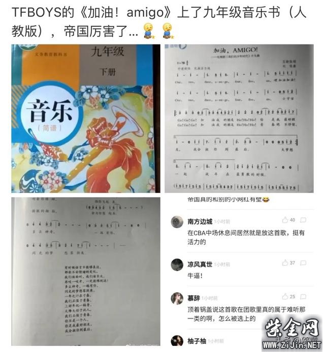 Gần đây, khi học sinh lần lượt bắt đầu vào học kỳ 2 cũng là lúc họ mang theo những quyển sách giáo khoa mới, và điều đầu tiên họ là chính là xem thử những nội dung trong sách có liên quan đến TFBoys hay không. Và lần này họ phát hiện trong sách giáo khoa âm nhạc Trung học cơ sở có bài hát Cố lên, Amigo! của nhóm nhạc TFBoys.