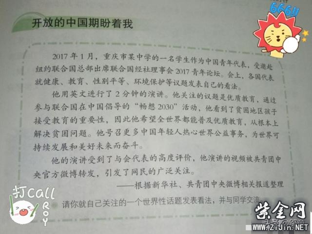 Nhưng thực ra ngoại trừ sách giáo khoa âm nhạc ra thì Vương Nguyên cũng từng có vinh hạnh xuất hiện trong sách giáo khoa Đạo đức và Pháp trị. Vị cư dân mạng này còn chụp một trang của sách, trong đó có thể thấy rõ quyển sách viết: “Vương Nguyên vào tháng 1 năm 2017 trở thành đại diện của thanh niên Trung Quốc, nhận được lời mời của Tổng bộ Liên hợp quốc tham dự Diễn đàn hội nghị thanh niên Liên Hợp Quốc năm 2017…”