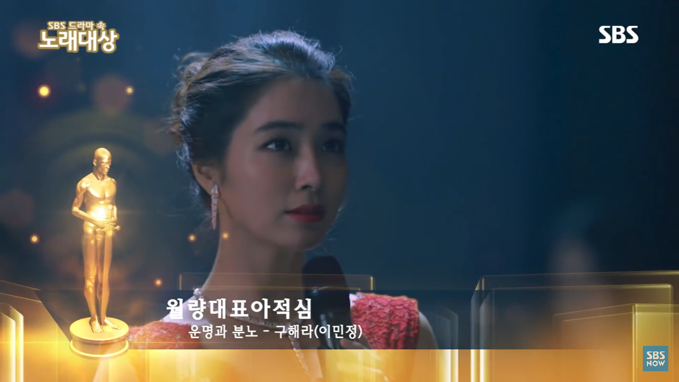 Mới đây SBSNOW đã phát hành một video được ghép từ Lễ trao giải thưởng phim truyền hình đài SBS cuối năm ngoái với các phần trình diễn của Jang Nara, Shin Hye Sun và Lee Min Jung trong bộ phim truyền hình ăn khách hiện nay kèm theo chú thích: “Kết thúc cuối năm! Lễ trao giải Drama Music Awards được diễn ra~ Lễ hội của các ngôi sao! Thời gian tỏa sáng ~ Hãy bình chọn 'Ca khúc drama phim truyền hình SBS' xuất sắc nhất”.