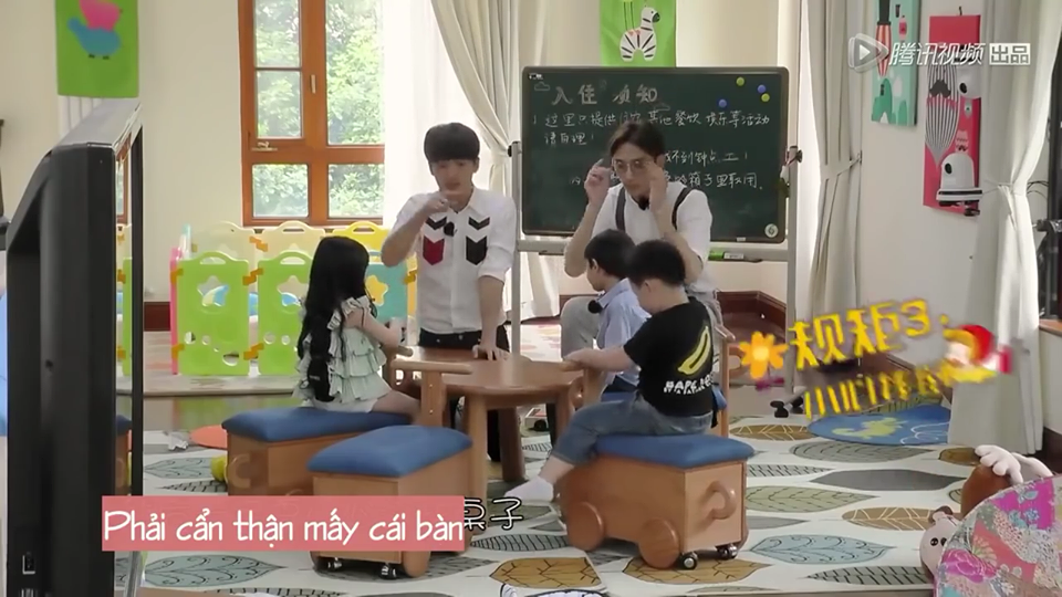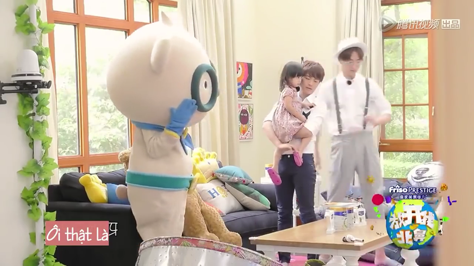 Trong Baby let me go, các chàng nam thần của chúng ta phải thực hiện nhiệm vụ chăm sóc các bé. Ở nhà baby, Mã Thiên Vũ, Hầu Minh Hạo, Vu Tiểu Đồng, Lưu Hiến Hoa đã có mặt cơ hội quý báu thực tập làm bố trẻ con.