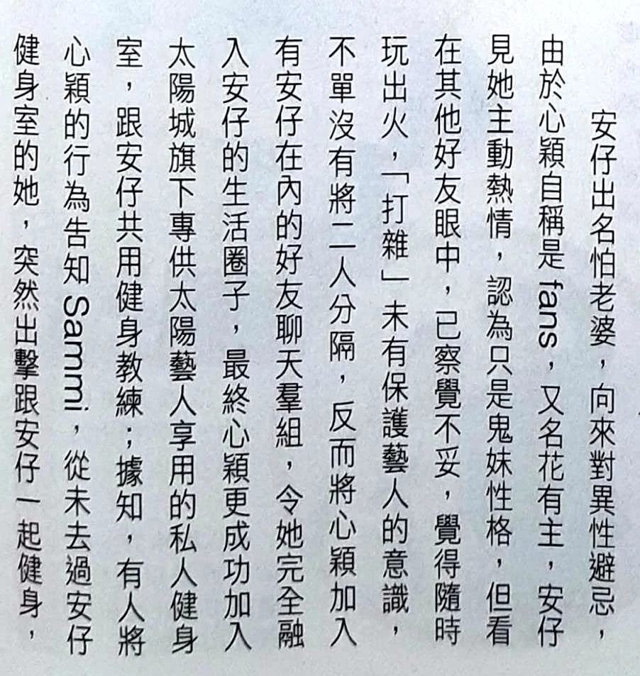 “Đột nhiên thức dậy (suy nghĩ) một số chuyện, không nói ra thì cảm thấy không thoải mái. Tôi nhớ có một ngày, cô ấy rất buồn khi nói với tôi, vì cơ hội gặp bạn trai càng ngày càng ít, tình cảm xảy ra vấn đề, còn nói đã lỡ yêu một người đàn ông khác đã có vợ, vô cùng áy náy. Người đó là chồng của Thiên Hậu, nhưng người đàn ông này bày tỏ cuộc hôn nhân của anh ta có vấn đề, nói rằng sẽ ly hôn, nên cô ấy mới nguyện ở bên cạnh anh ta, cô ấy chỉ là nạn nhân.