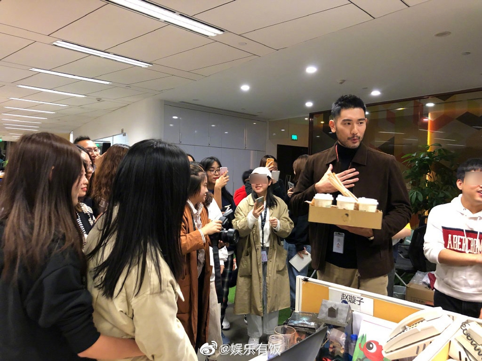 Cao Dĩ Tường đến thăm tòa soạn Sina, mang theo rất nhiều trà sữa.