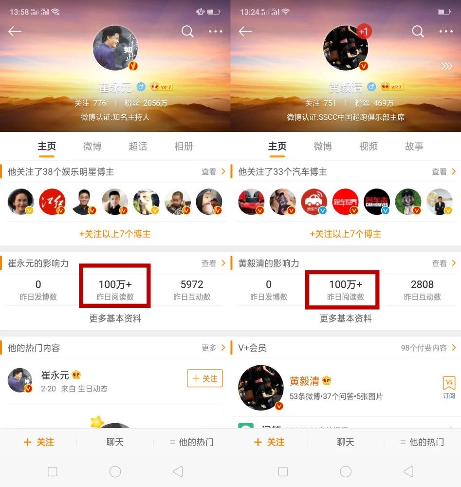 Thế nhưng, cũng có người nói bản cải biên là này của Sina bị lỗi, gặp trục trặc thế thì tại sao những minh tinh lớn như Dương Mịch, Angelababy, Địch Lệ Nhiệt Ba… lượng xem đọc đều vượt trên 1 triệu +. Và so với những minh tinh đang nổi tiếng thì những nhân vật có độ ảnh hưởng khác như Hoàng Nghị Thanh và Thôi Vĩnh Nguyên những ngày gần đây không hề đăng tin mới nhưng lượng người xem, đọc bài họ không hề ảnh hưởng gì khi vượt mức trên 1 triệu.