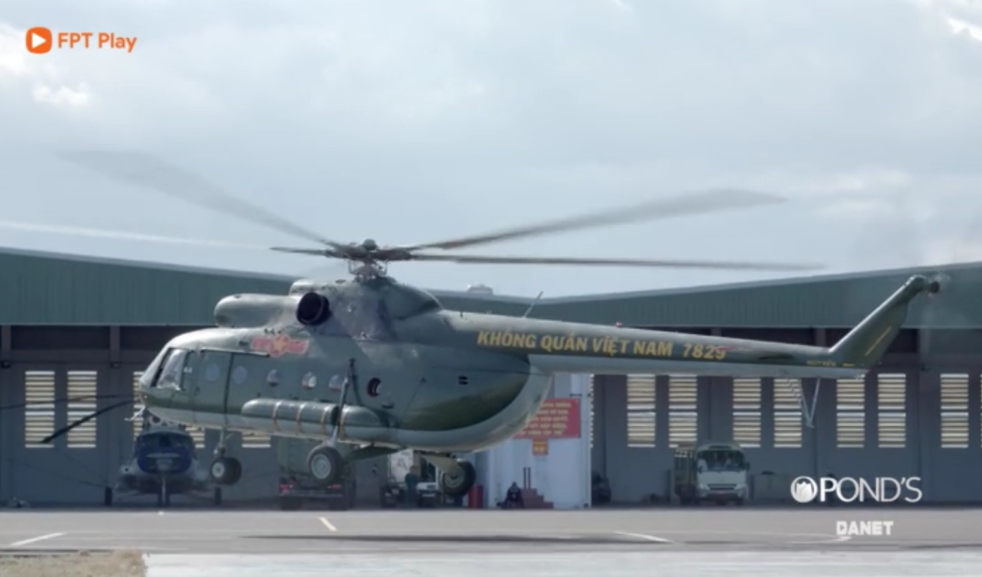 Hoài Phương đối diện chiếc trực thăng chở đại úy Duy Kiên.