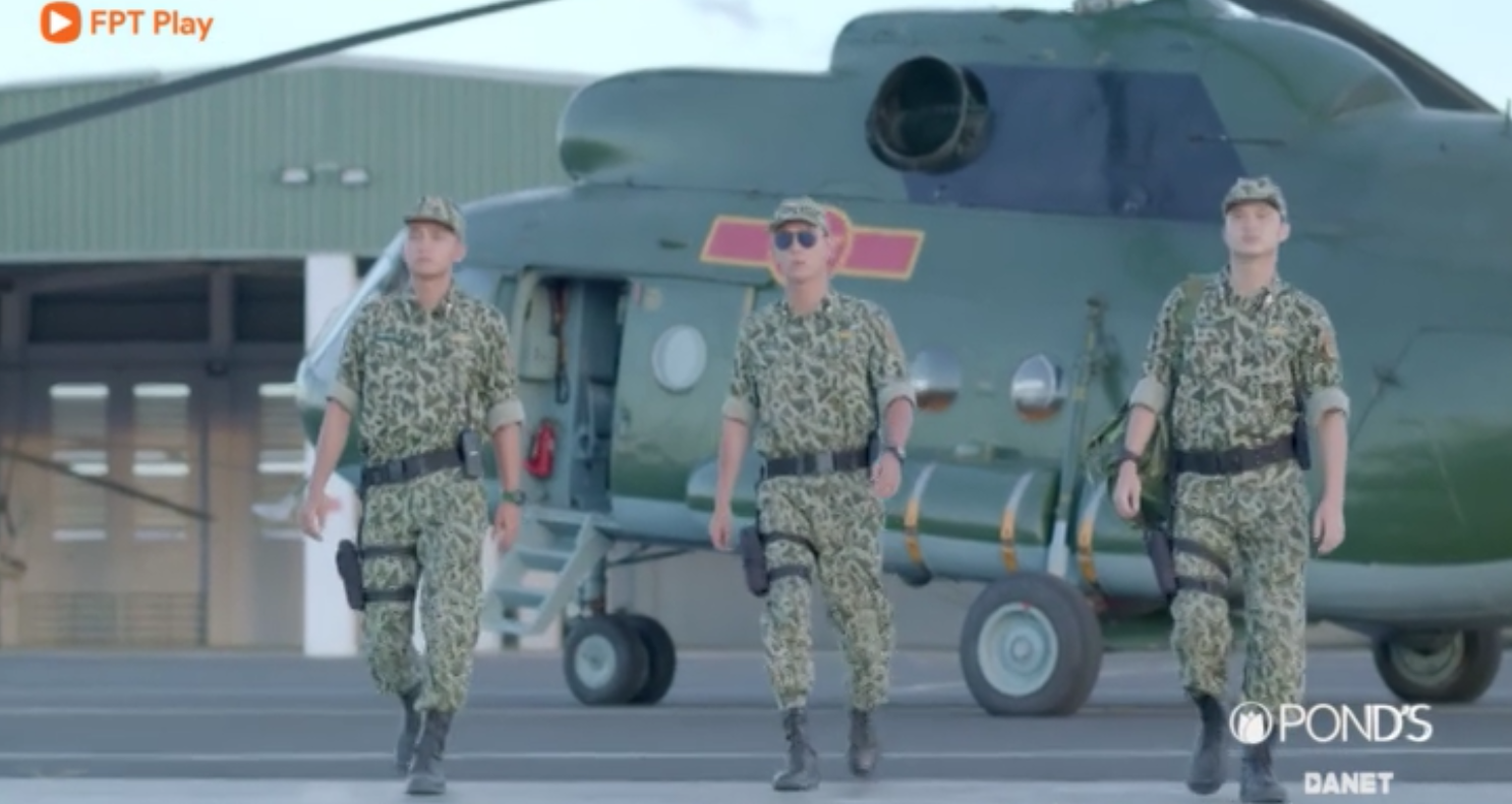 Đại úy đã xuất hiện bằng trực thăng chuyên dụng như mong ước của khán giả.