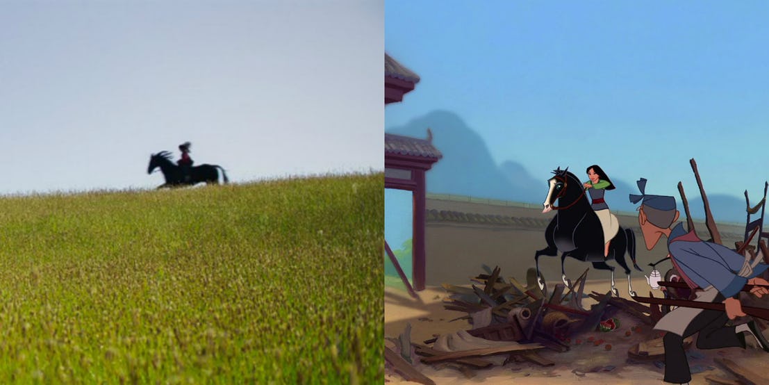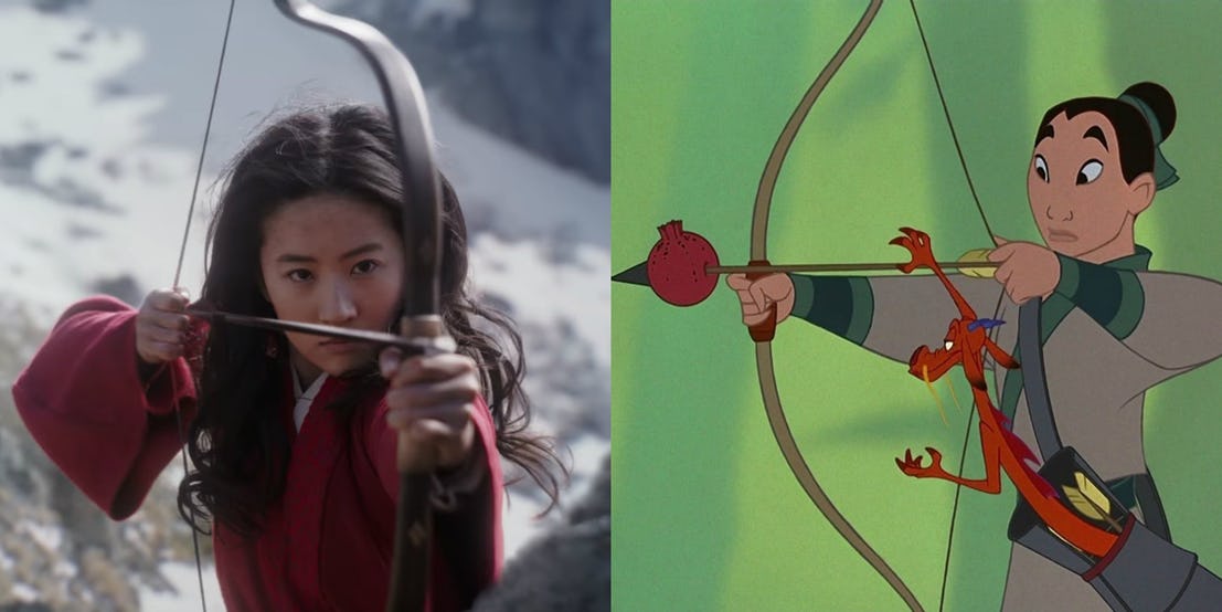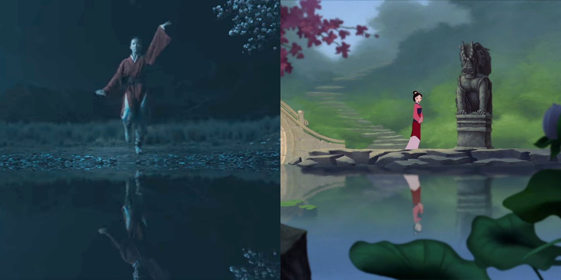 Hơn thế nữa, bản gốc hoạt hình lại không được đón nhận nhiều ở Trung Quốc, khiến phiên bản live-action chưa chính thức lên sóng đã hứa hẹn gặp phải không ít rủi ro. Chính vì thế, Disney đã mạnh bạo thay đổi một số tình tiết so với bản hoạt hình, nhưng nhìn chung giữa trailer 2 bản vẫn có một số điểm giống nhau đáng chú ý.