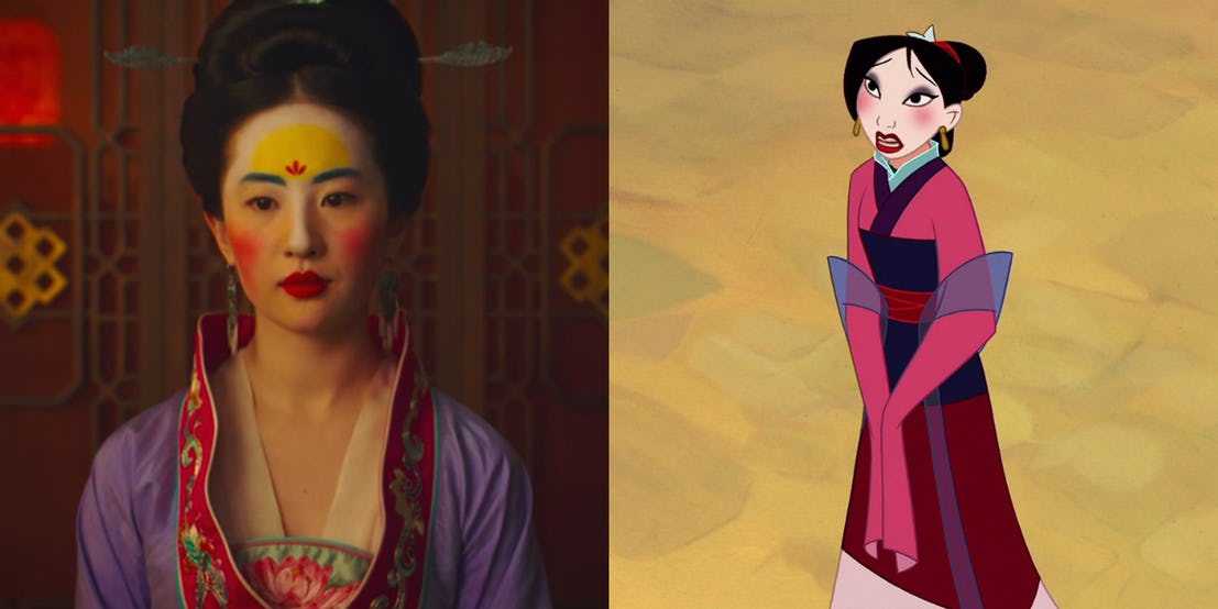Có cả một trận đấu tranh gay gắt để khán giả có thể thấy cảnh trang điểm của Mulan trong bản phim hoạt hình, và cuối cùng thì cô nàng đã được khoác trên mình một bộ trang phục truyền thống. Sang đến bản live-action, điều này được đầu tư với cách trang điểm cầu kỳ hơn, trang phục cũng lạ mắt hơn.