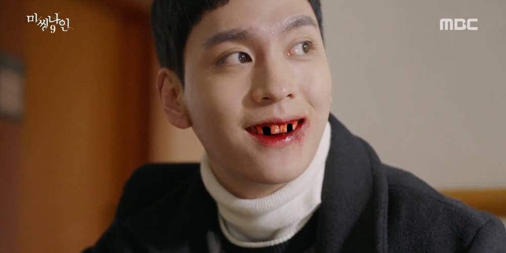 Luôn đồng hành cùng yêu tinh Kim Shin là vị thần chết lạnh lùng, nghiêm túc do nam diễn viên Dong Wook thủ vai. Dù vậy, nếu mất đi hàm răng như bức ảnh này, có lẽ anh sẽ chẳng bao giờ dám khóc…
