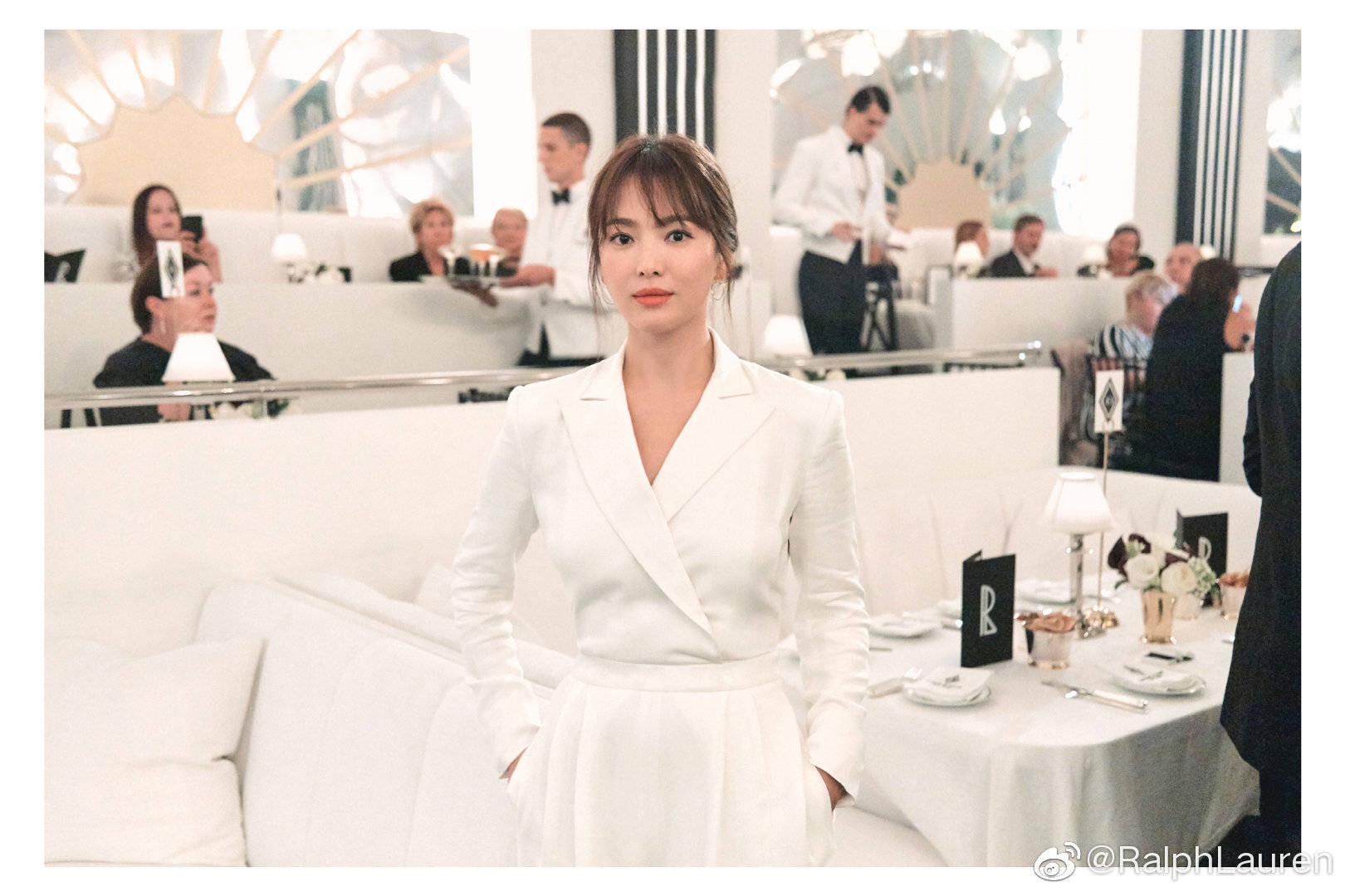 Vào ngày hôm đó, Song Hye Kyo diện trên người bộ trang phục tinh tế màu trắng. Tuy nhiên, nó vẫn tạo nên được sự sang trọng và thanh lịch vốn có của cô. Ngay cả kiểu tóc giản dị cũng tạo nên sự hấp dẫn. Trước ống kinh, nữ diễn viên mang đến bầu không khí ấm áp, thân thiện của một ngôi sao hàng đầu.