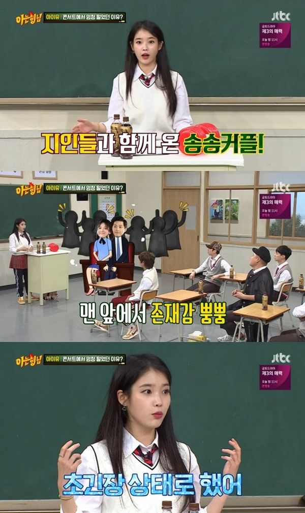 Trong một cuộc phỏng vấn trước đây, Song Joong Ki đã tiết lộ rằng Song Hye Kyo rất thích những ca khúc do IU thể hiện. Cặp vợ chồng cũng đã tham dự một trong những buổi hòa nhạc lớn của nữ ca sĩ vào năm 2017. Bên cạnh đó, IU cũng đã nói về điều này khi tham dự show truyền hình Knowing Brothers đài JTBC.