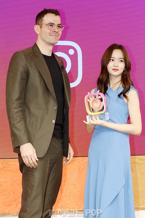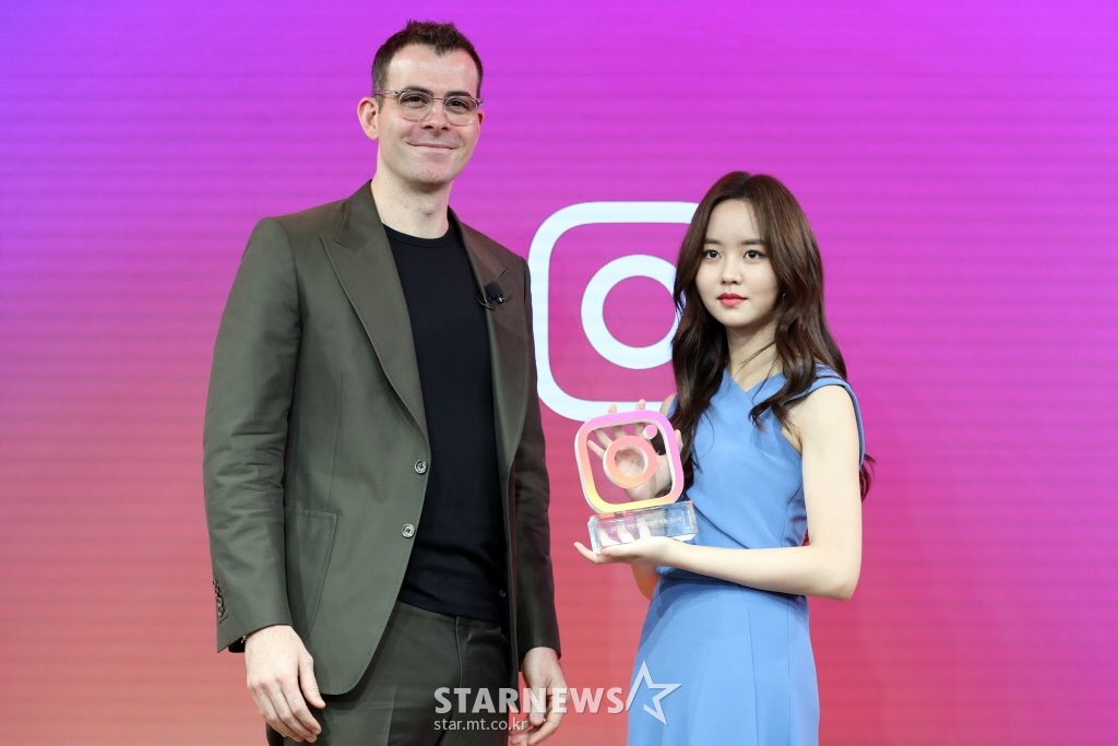 Kim So Hyun nhận cúp từ đại diện của Instagram
