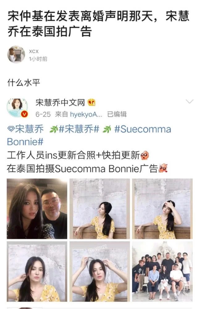 Hóa ra, Song Joong Ki không những không thông báo về việc đề đơn xin ly hôn với Song Hye Kyo mà còn lựa lúc Song Hye Kyo đang ở Thái Lan quay quảng cáo. Lúc Song Joong Ki đề đơn ly hôn thì trang mạng chính thức của Song Hye Kyo đăng tải hình ảnh quảng cáo mới nhất của cô ấy. Lúc đó, Song Hye Kyo mặc chiếc váy màu vàng, tóc buộc lên trong rất giống thiếu nữ đơn thuần. Cũng có thể Song Hye Kyo không ngờ rằng, Song Joong Ki sẽ chọn thời gian này để xin ly hôn với mình.