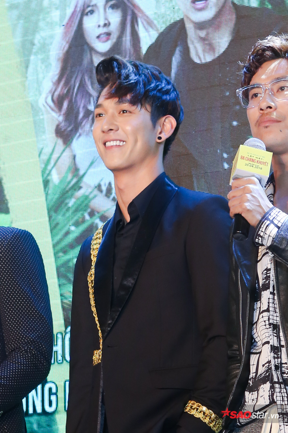 Huy Khánh lịch lãm xuất hiện trong họp báo.