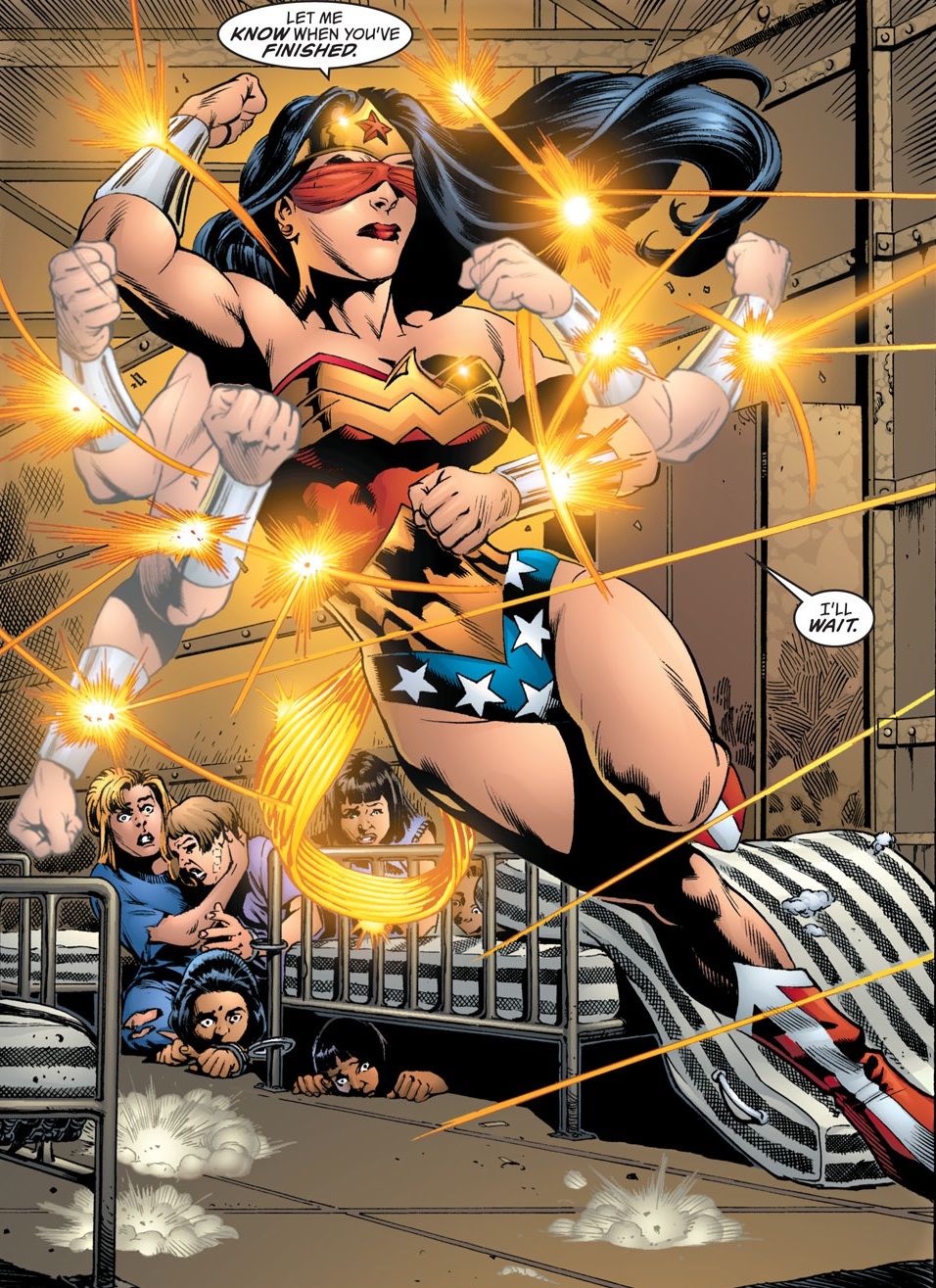 Đây là ví dụ cho thấy sức chống chịu và trí thông minh của Wonder Woman, và khả năng lật ngược thế trận ngay cả khi bản thân đang trên bờ vực thua thiệt. Carol tốt nhất nên quên đi việc chơi trò “bịt mắt bắt dê” với Diana, vì kẻ mù thường sẽ phát triển những giác quan khác, và Carol có lẽ không thể chịu nổi một đấm của Diana “khiếm thị” đâu.