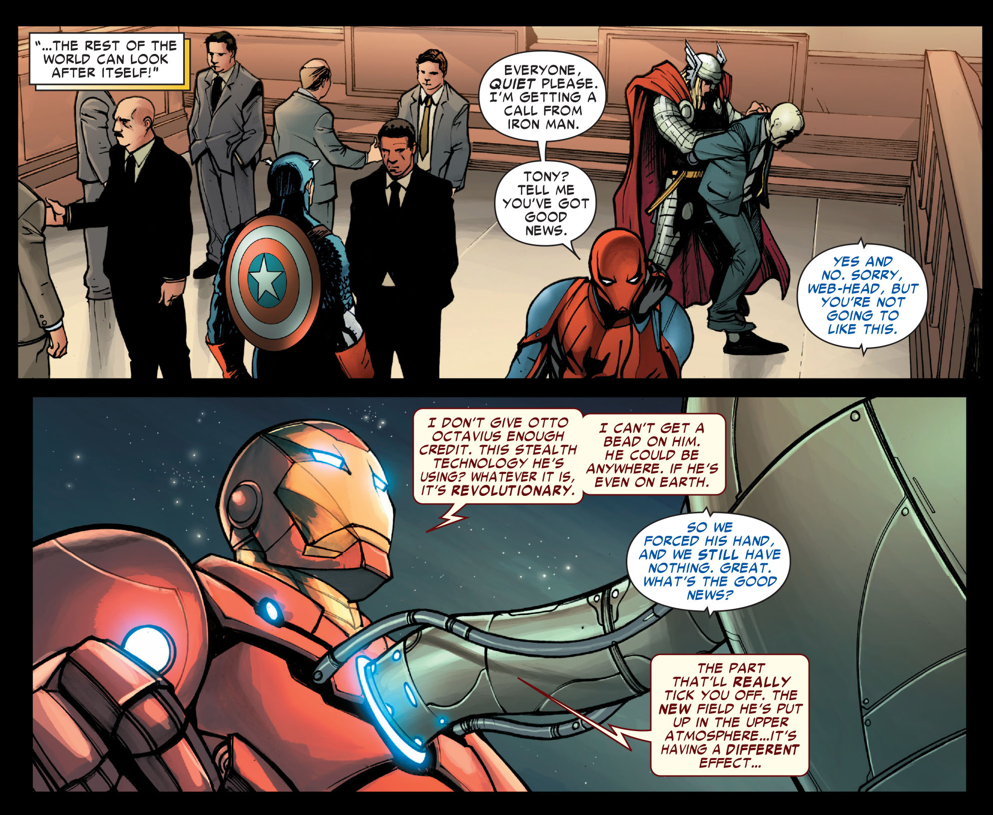 Trong Amazing Spider-Man (1963) # 682, Doc Ock đã triệu tập Sinister Six để thực hiện kế hoạch cuối cùng để xâm chiếm Trái Đất. Bằng cách kích hoạt 1 antenna khổng lồ tên Octahedral, lão kích hoạt nhiều vệ tinh xung quanh quỹ đạo Trái Đất (được gọi là “thấu kính Octavian”) nhằm tăng tốc Hiệu ứng nhà kính và nung nóng cả thế giới. Doc Ock đã tuyên truyền rằng chỉ có lão mới có thể khắc phục “tai nạn phá hủy vệ tinh” và hứa hẹn sẽ cứu thế giới, đem tặng món quà to lớn cho nhân loại - đó là tương lai.