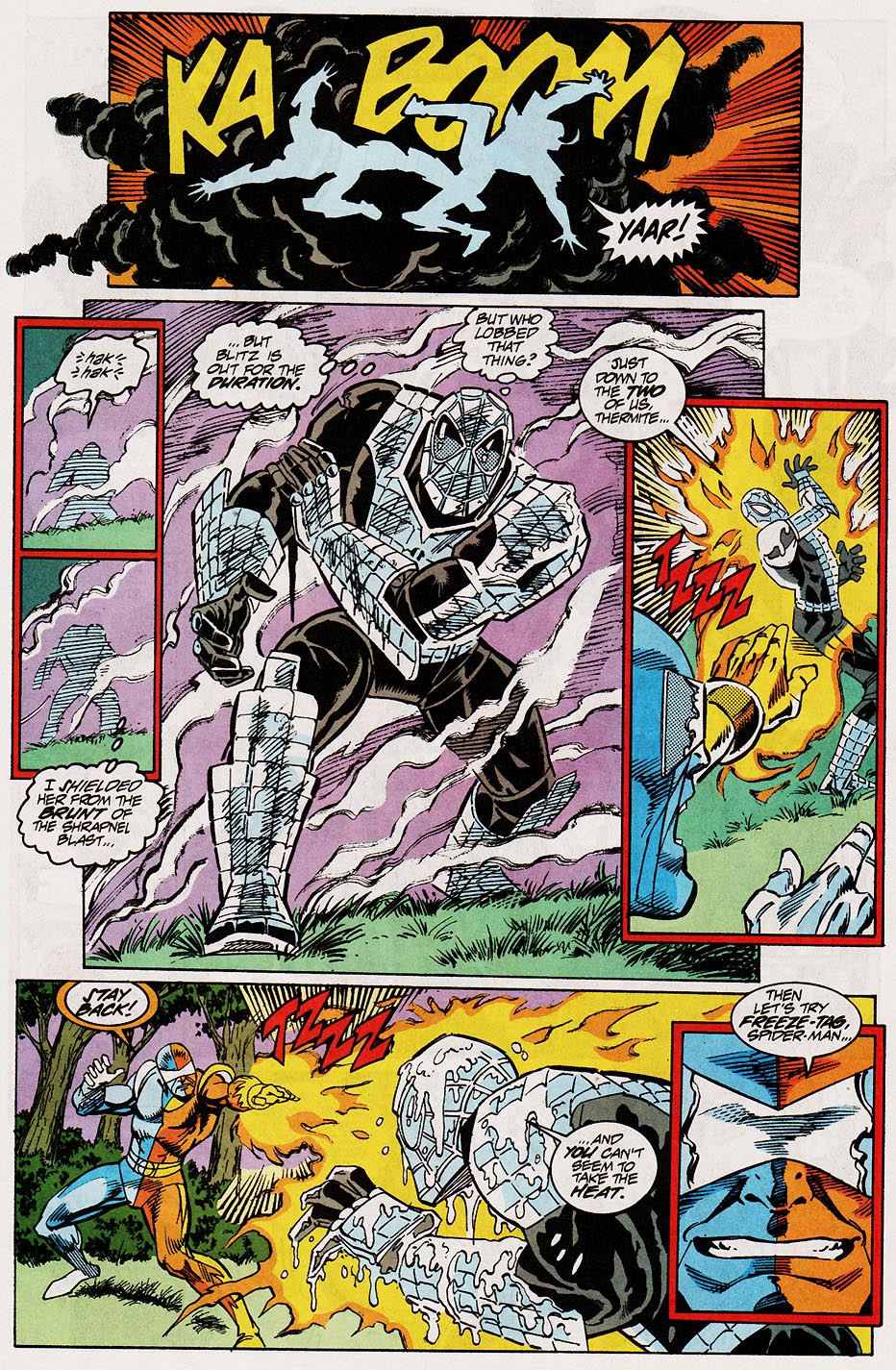 Tuy rằng nó có khả năng bảo vệ anh, giúp anh lăn xả vào lòng địch, nhưng anh đã phát hiện ra rằng nó là nguyên nhân chính làm giảm tốc độ của anh. Trong trường hợp tốc độ bị giảm mạnh, anh sẽ dễ bị trúng đòn từ địch hơn. Ngay sau đó, bộ áo giáp đã bị phá hủy bởi acid và Peter đã hạ tất cả bằng chính sức mình.