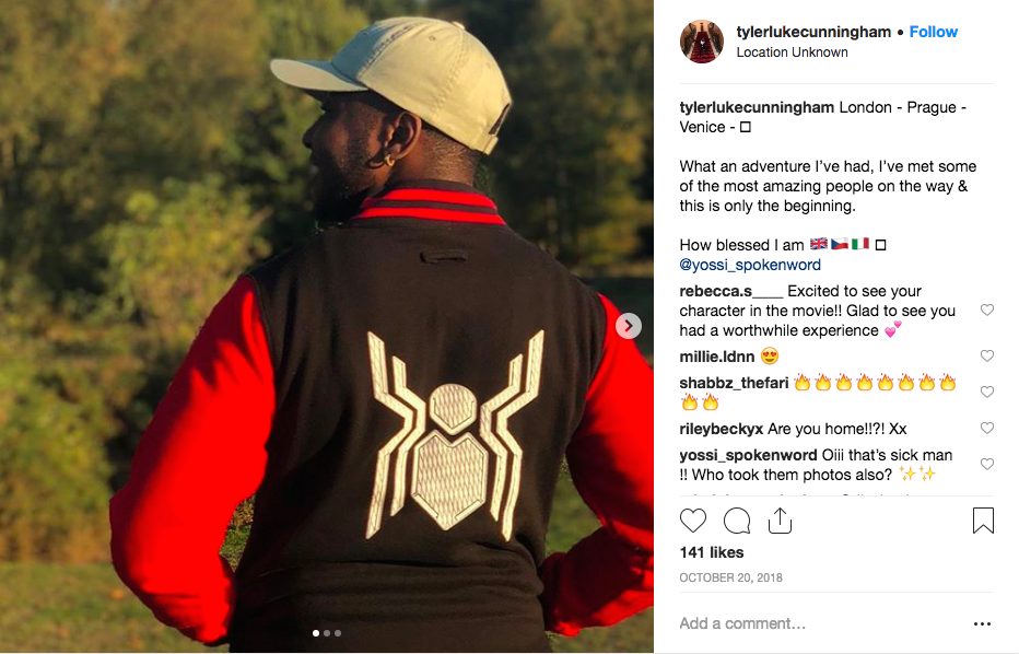Tyler Luke Cunningham đã từng góp mặt 5 tập trong series Boy meet Girl back trong năm 2016. Trên mạng xã hội Instagram, anh chàng đã khoe ảnh chiếc áo Nhện tại những địa điểm Spider - Man: Far From Home được quay.