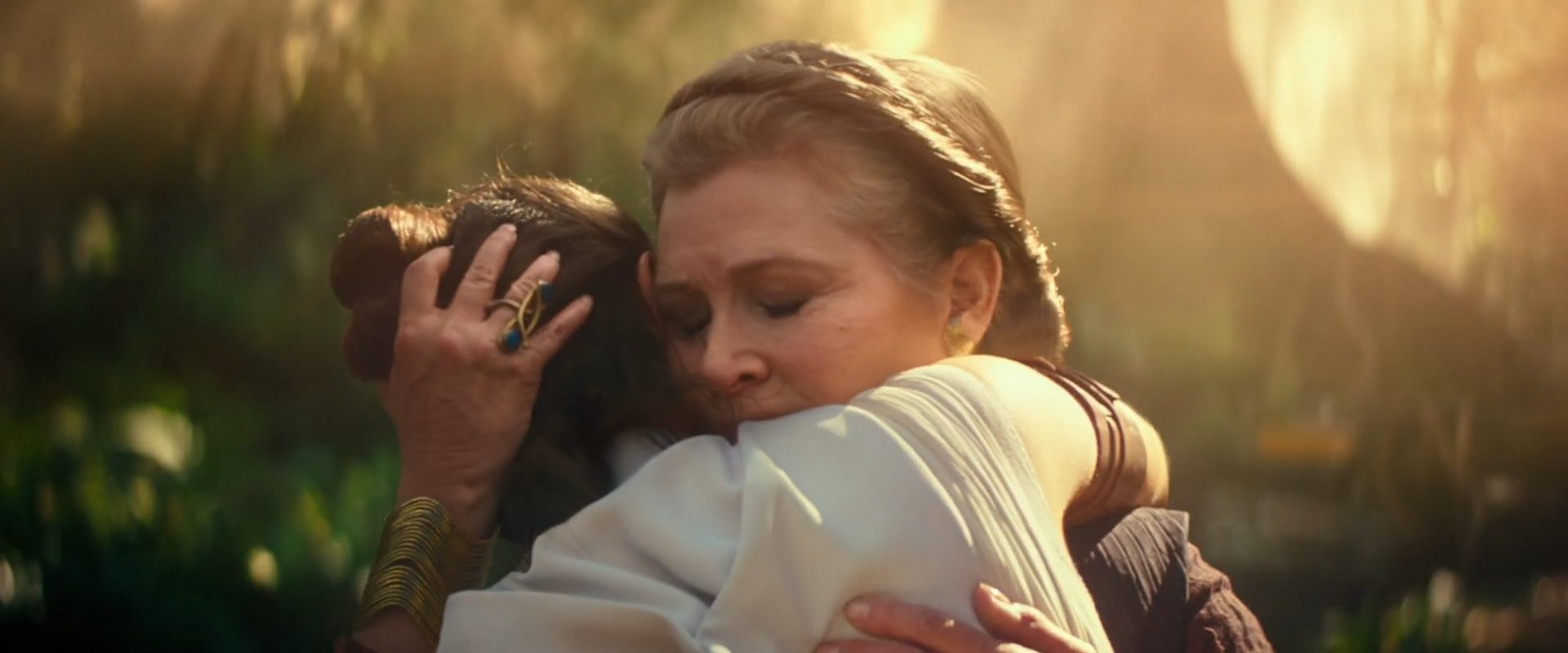 Trong trailer vừa công bố, khán giả cũng đã nhìn thấy hình ảnh Leia xuất hiện, ôm chầm lấy Rey với hàng nước mắt chảy dài như nỗi lòng của mọi người.
