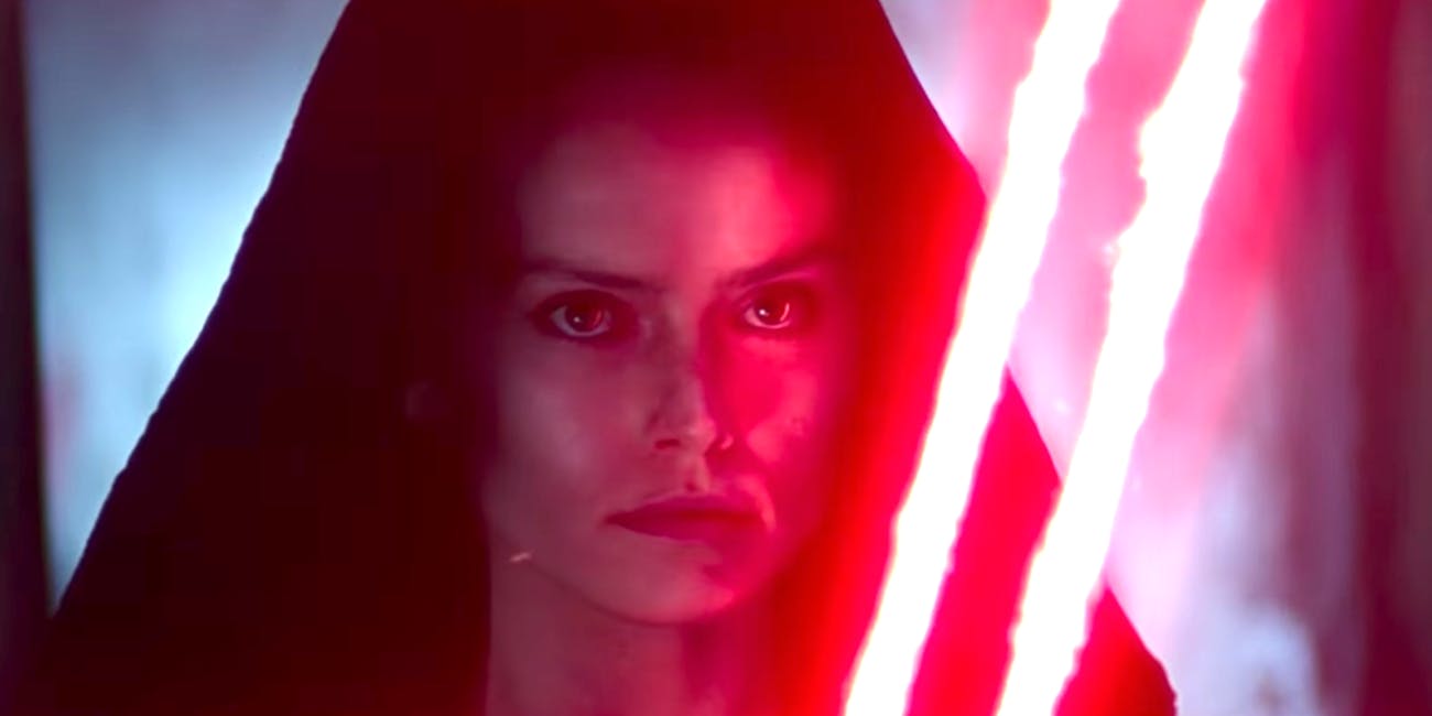 Khi Rey tìm được Sith Wayfinder, cô ấy đã thấy được một viễn cảnh khác nhờ vào thần lực, đó là cô chiến đấu với chính phiên bản độc ác của bản thân mình. Ray phiên bản hắc ám đã theo phe Dark Side để chống lại quân Nổi loạn. Ray độc ác khoác lên mình bộ đồ màu đen, cùng với đó là chiếc lightsaber kép. Đây là chiếc gươm của Darth Maul trong bộ phim The Phantom Menace. Không chỉ vậy, trong bộ phim The Empire Strikes Back, người xem đã thấy cảnh Luke thấy mình tiêu diệt Darth Vader, nhưng phía sau chiếc mặt nạ của hắn lại chính là Luke. Đó là lí do có giả thuyết cho rằng Luke là con trai của Dark Vader. Và trong phần phim mới này, Rey phát hiện ra mình là cháu gái của Palpatine.