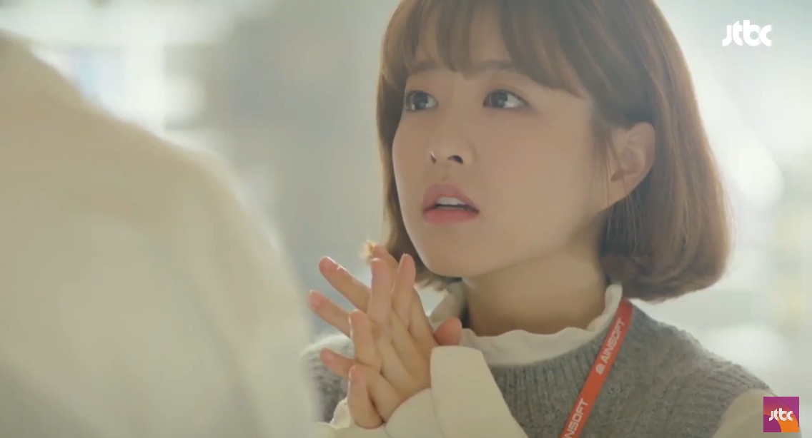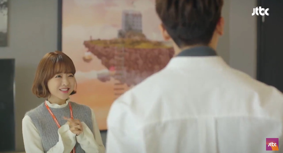 Không dừng lại ở đó, Min Hyuk hứa sẽ cho nữ chính một quản lý cấp cao, anh nghiêm nghị tiến đến gần cửa, hắng giọng mời người này vào. Vài giây sau, nam chính đột ngột quay về phía Bong Soon và mỉm cười: “Chính là tôi đây”.