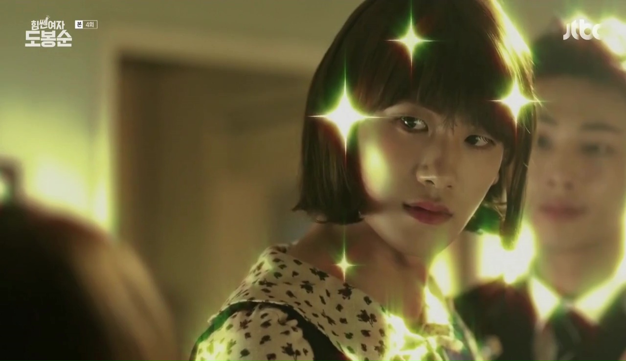 Dù mang sức mạnh hơn người, Do Bong Soon vẫn tỏ ra yếu ớt, đáng yêu trước mặt Guk Doo - người bạn thanh mai trúc mã mà cô thầm thích, thái độ này của nữ chính luôn bị An Min Hyuk trêu chọc. Thậm chí, anh chàng thường xuyên bắt chước biểu cảm, giọng nói điệu đà của cô khi nói chuyện với nam phụ.
