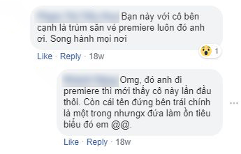 Ngay sau đó, một nhân viên của nhóm phát hành phim tại Việt Nam đã để lại lời nhắn bên dưới, rằng người phụ nữ U50 này cùng với một thanh niên “là trùm săn vé premiere luôn đó. Song hành mọi nơi”.