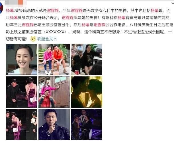 Tạ Đình Phong từ năm 2014 sau khi tái hợp với Vương Phi thì tình cảm của cả hai vẫn luôn rất ổn định, họ thường xuyên đi du lịch cùng nhau và không ít lần bị cư dân mạng gặp được, tình cảm vô cùng mặn nồng. Thế nhưng, trong thời gian gần đây đột nhiên xuất hiện những tin đồn cả hai đã chia tay, thậm chí còn có Blogger tiết lộ rằng Tạ Đình Phong và Dương Mịch đã ở bên nhau, khoảng tháng Ba sẽ công bố tình cảm và với tin tức như thế này làm khán giả cảm thấy vô cùng kinh ngạc.