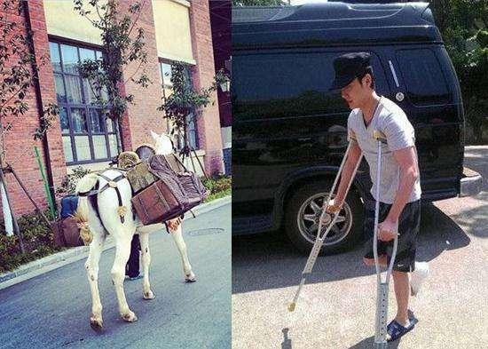 Còn Huỳnh Hiểu Minh trong quá trình quay bộ phim Bạch phát ma nữ truyền chi minh nguyệt thiên quốc đã xảy ra sự cố. Vì dây cáp rời khỏi trục, Huỳnh Hiểu Minh rơi từ chỗ cao 3m xuống đất, sau đó được đưa đến bệnh viện khoa xương để điều trị. Ngay lập tức xuất hiện tin chân trái và tay trái của Huỳnh Hiểu Minh bị nứt xương, nhưng cuối cùng bác sĩ xác nhận hai ngón chân của bàn chân trái của anh bị gãy xương, nhiễm trùng ở đầu gối trái và phải.