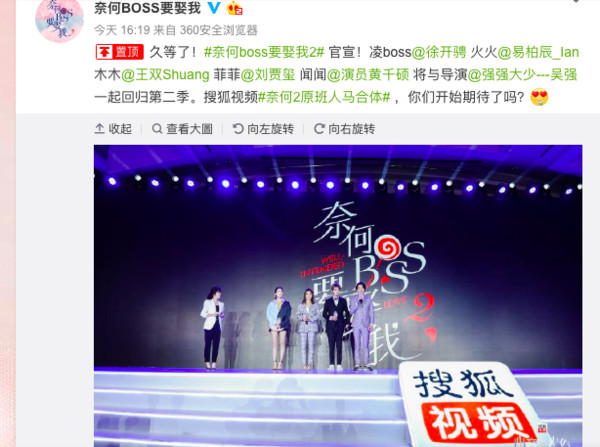 Với việc khởi quay phần 2 của Tại sao boss muốn cưới tôi (奈何BOSS要娶我) khiến khán giả cảm thấy vui mừng và hồ hởi chờ đợi là bởi vì họ tuyên bố nguyên dàn diễn viên cũ sẽ trở lại.