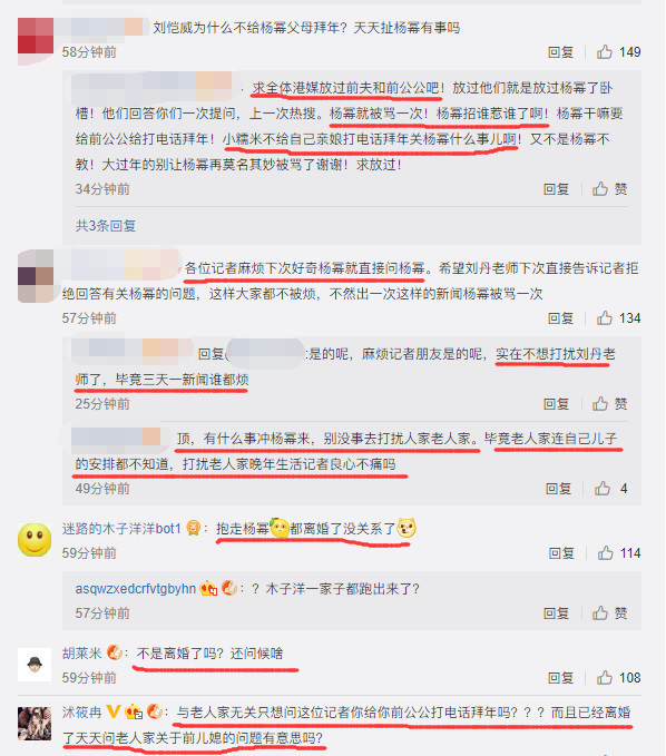 Nhiều người cho rằng khi cả hai đã ly hôn mà người con dâu lại thản nhiên chúc Tết gia đình chồng cũ như chưa có gì xảy ra mới là điều lạ đời, không cần thiết và đáng xấu hổ. Thế nhưng, một điều khiến nhiều người tranh luận: “Từ trước đến giờ khi cả hai còn hạnh phúc cho đến khi ly hôn, truyền thông Hong Kong và nhà chồng Dương Mịch luôn hướng dư luận vào việc “Dương Mịch có làm tròn trách nhiệm con dâu, có chăm sóc lo lắng nhà chồng, có phải người mẹ tốt hay không?” mà chưa bao giờ tự hỏi hay thấy được những hình ảnh Lưu Khải Uy dẫn gia đình cùng bé Tiểu Gạo Nếp đến nhà vợ thăm ông bà ngoại?”