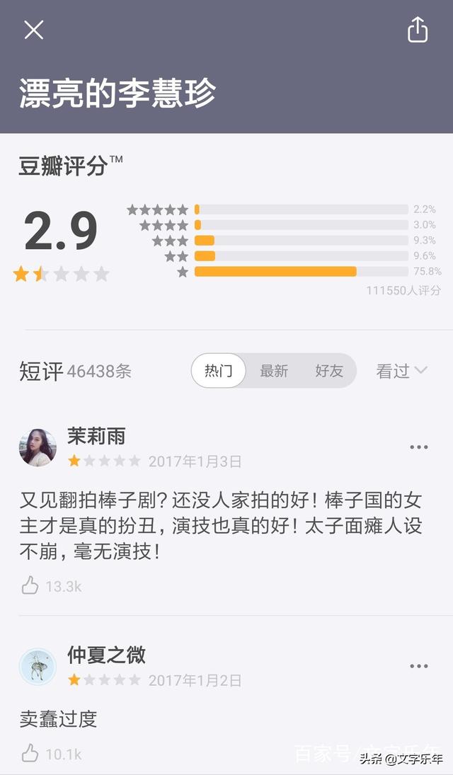 Trong khi đó trang mạng Douban, thông qua số điểm và bình luận để hiển thị độ yêu thích, ghét tương ứng với nội dung. Và điểm thấp cũng chính là sự phản ánh độ lệch so với sự công nhận của khán giả.