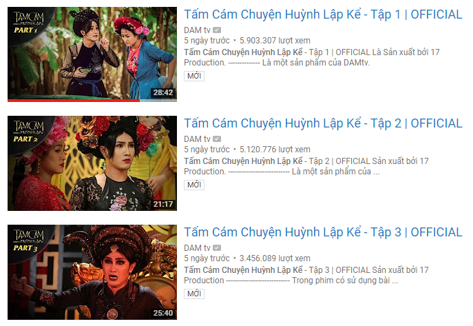 Tính đến thời điểm này, 3 phần phim của Tấm Cám: Chuyện Huỳnh Lập kể đã gần chạm ngưỡng 15 triệu view.