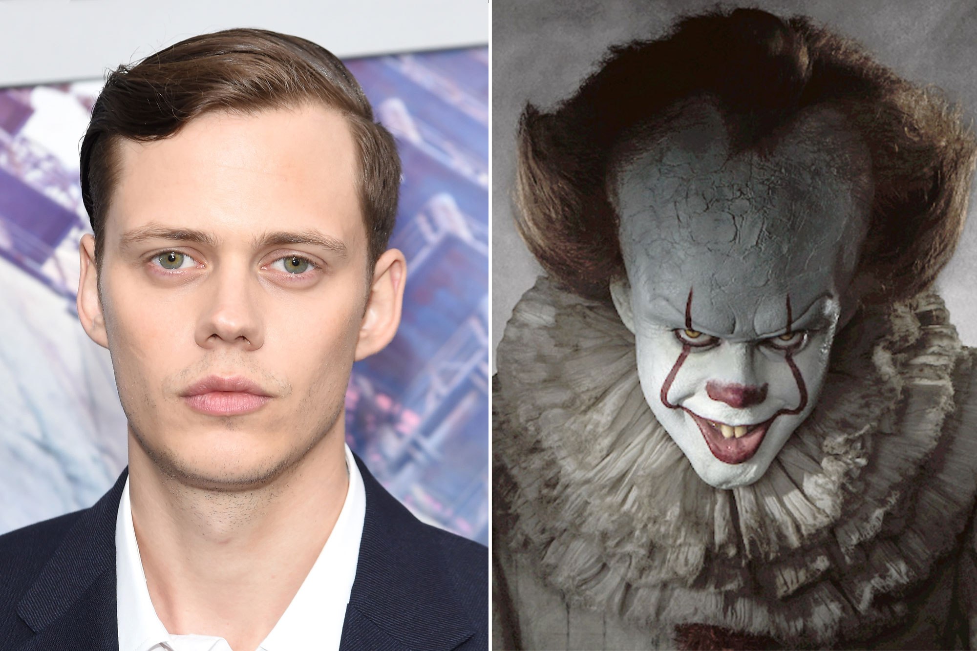 Chân dung thật của Bill Skarsgård và tạo hình gã hề Pennywise.