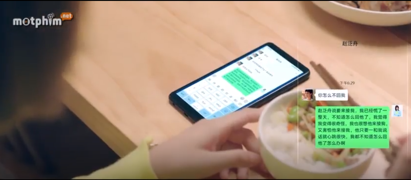 Tuy nhiên, vì bố mẹ hối ăn cơm, nên cô nàng đã gởi nhầm tin nhắn. Thay vì là cho cô bạn cùng phòng, thì Chu Tiêu đã gởi hết những tâm tư lo lắng của mình khi nhận được tin nhắn của Triệu Phiến Chu cho chính anh.